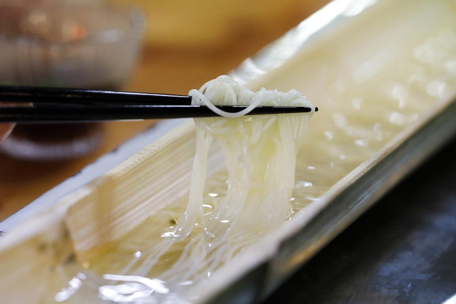 昭和30年、当時の新聞各社の支局員が屋外でそうめんを湯がき、高千穂峡の冷水にさらして食べ、涼を得たという事を記事にしました。その新聞記事を見た地元の食堂「千穂の家」の社長が、試行錯誤の末に「流しそうめん」のスタイルを生み出したといわれています。
