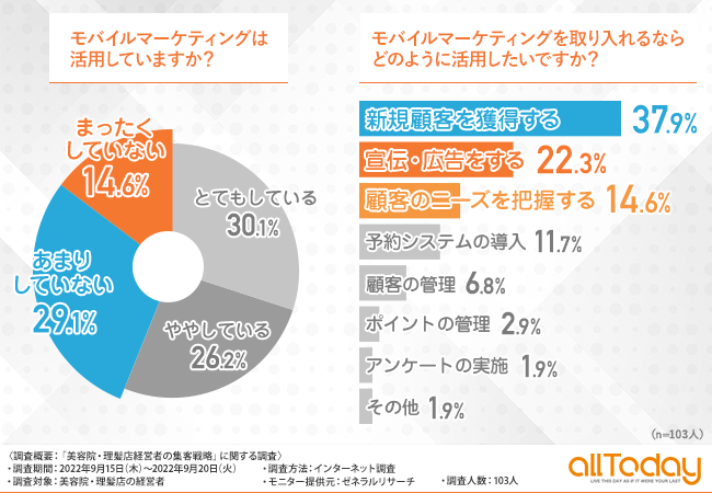 【オールトゥデイ|調査レポート】美容院・理髪店経営者のモバイルマーケティング活用状況が明らかに