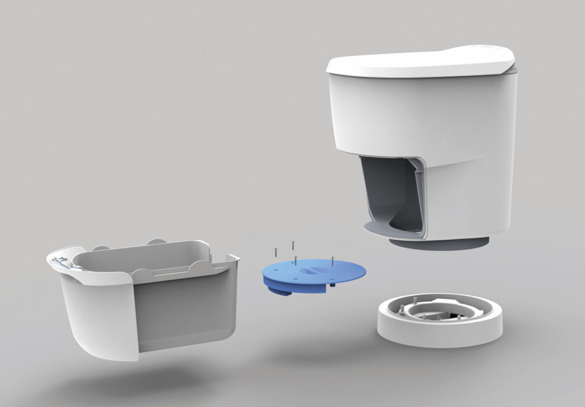 clesanaは本体内部にセットされたロール状のフィルムライナー(密閉式パック)が使用毎に自動密閉され、下のトレイにたまる仕様となっています。