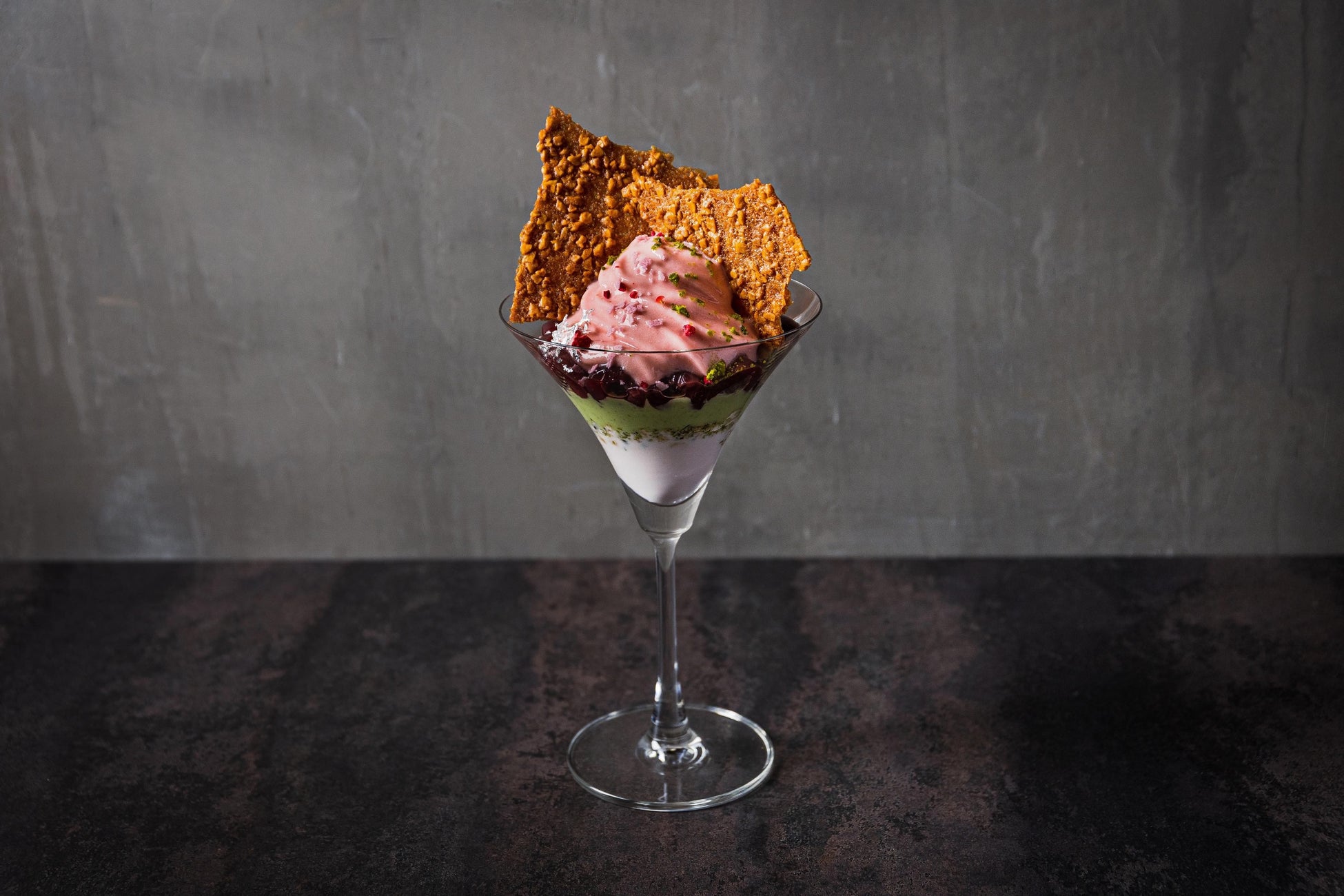 会員制パフェバー「Remake easy」季節限定パフェ「サクラグリオットピスターシュパフェ」を3月限定で販売開始。