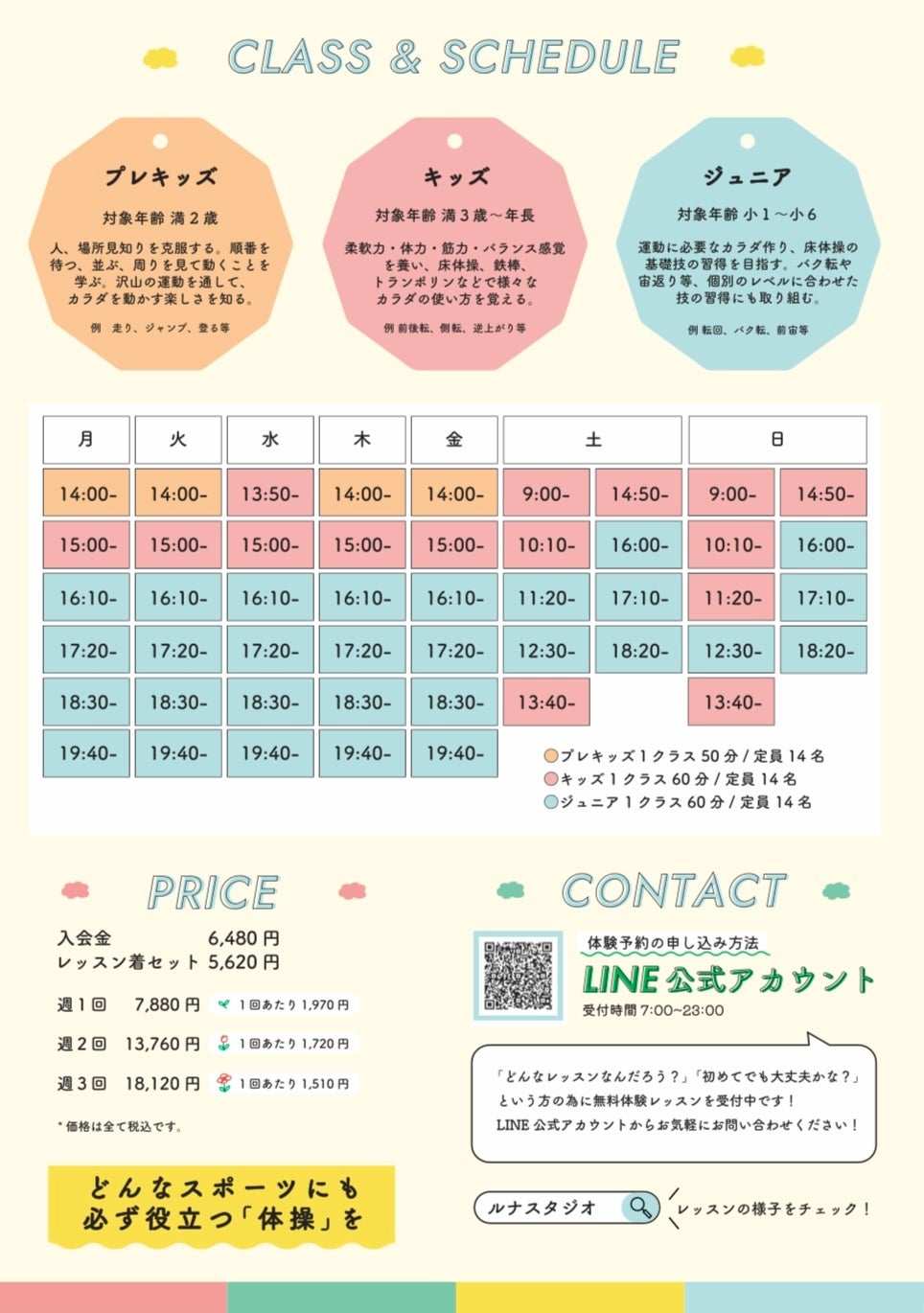 体操教室「LUNA STUDIO」の詳細については後ほどご紹介いたします。