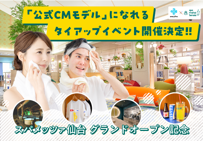 ライブ配信アプリ「everylive」日本最大級のスパ施設「スパメッツァ仙台」オープン記念のタイアップイベントが決定!公式CMモデルをかけたオーディションを開催!