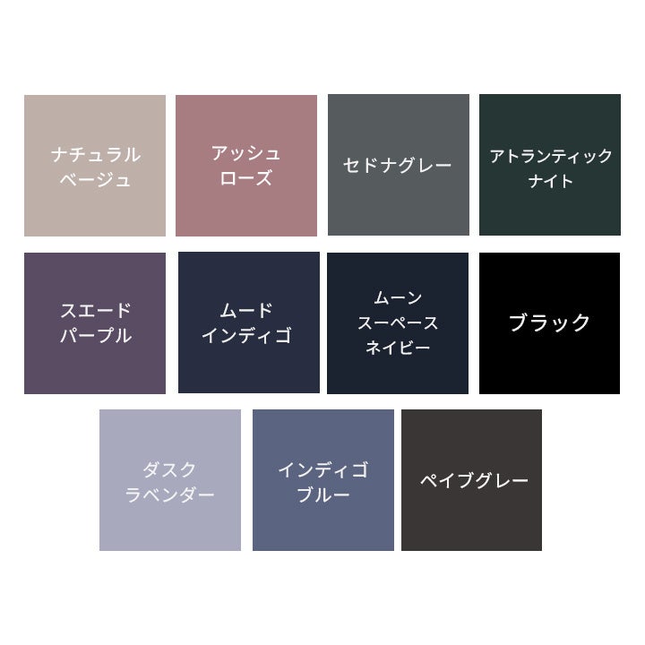 ダスクラベンダー、インディゴブルー、ペイブグレー