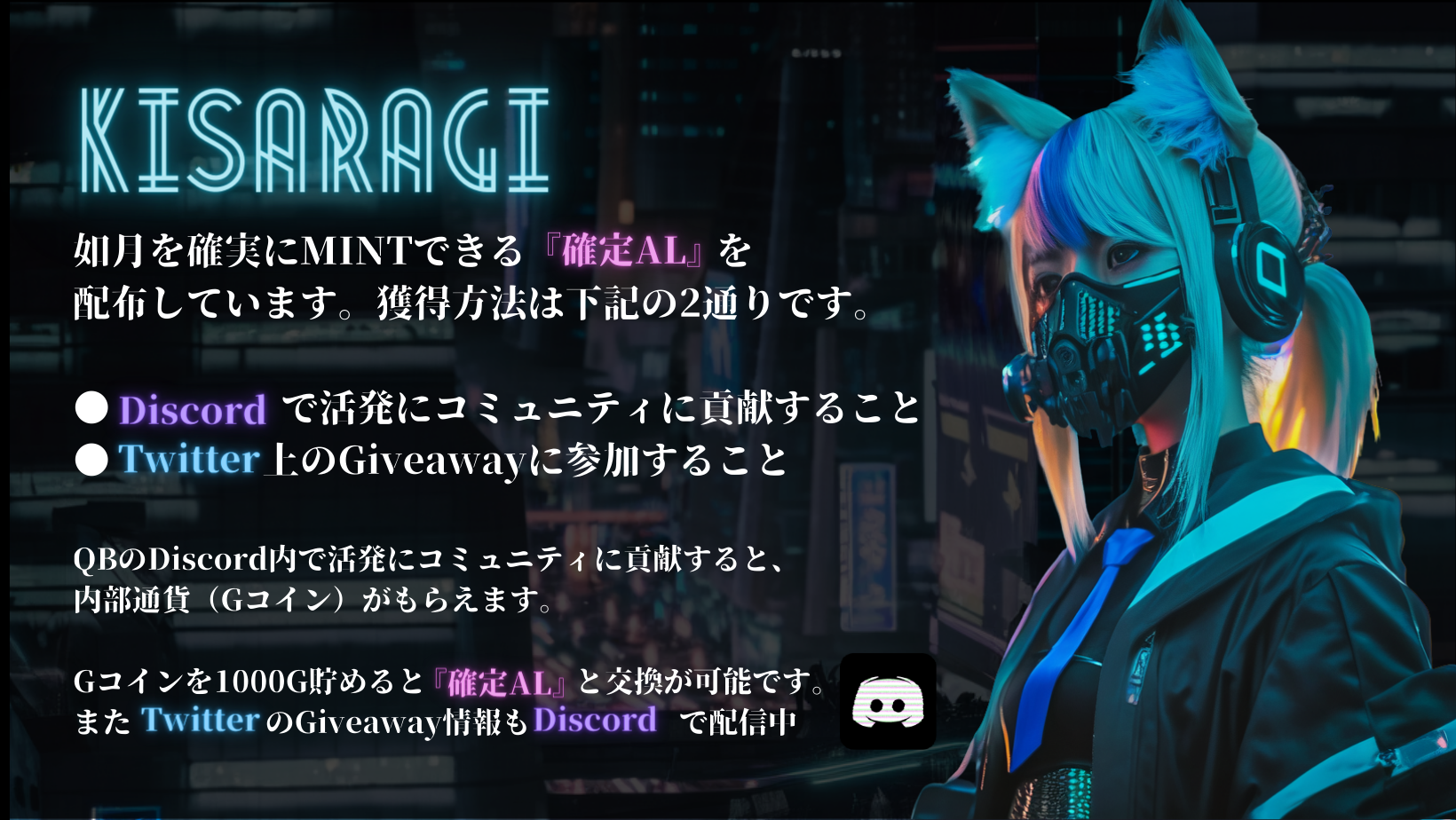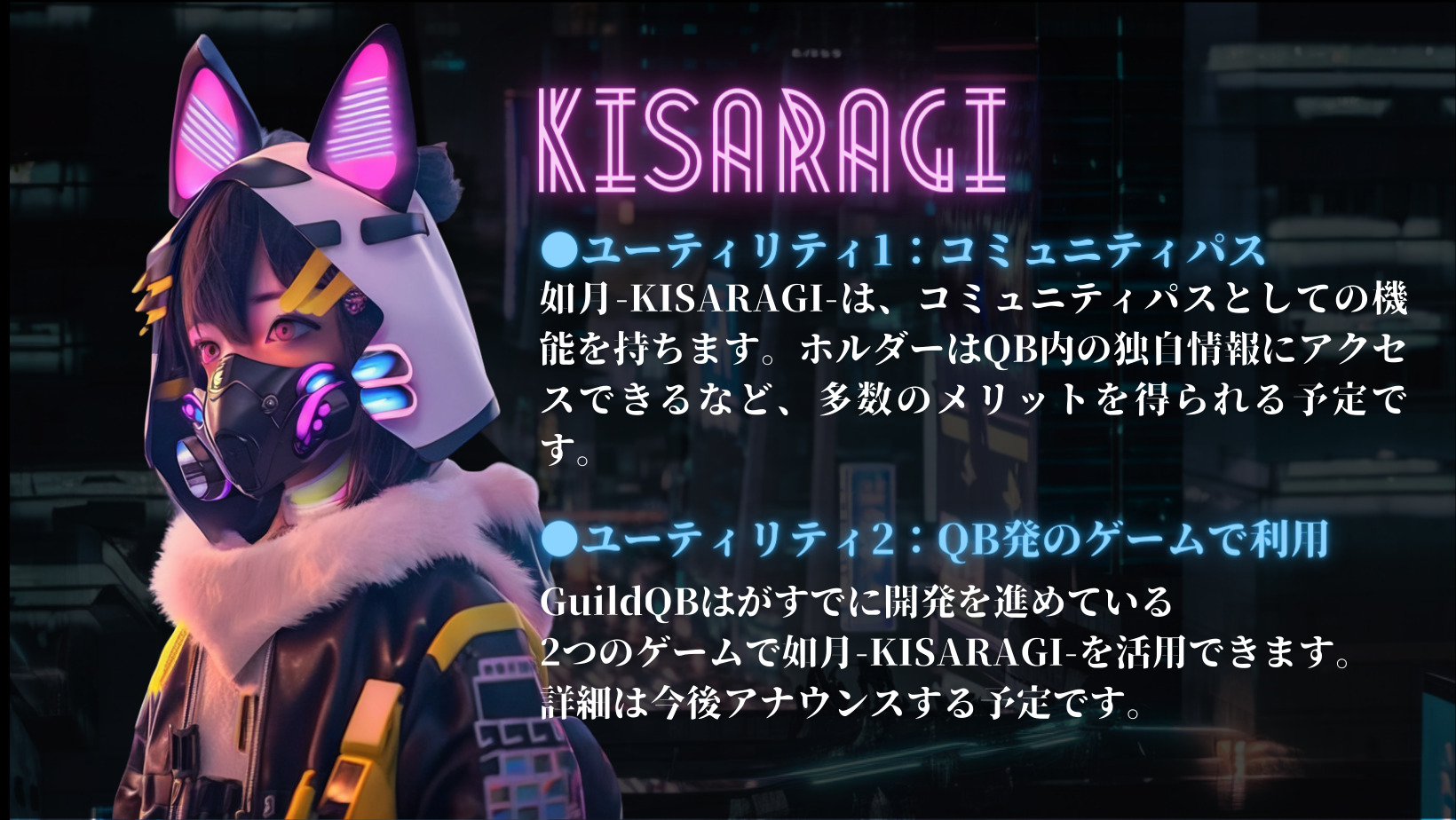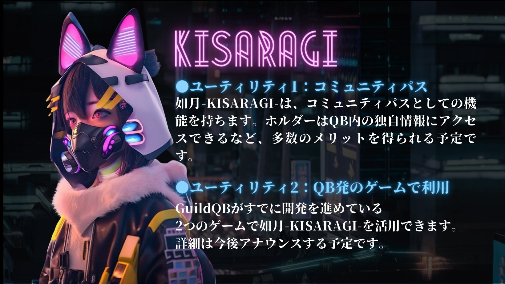GuildQBが発売するジェネシスNFTである如月-KISARAGI-は、コミュニティパスとしての機能を持ちます。