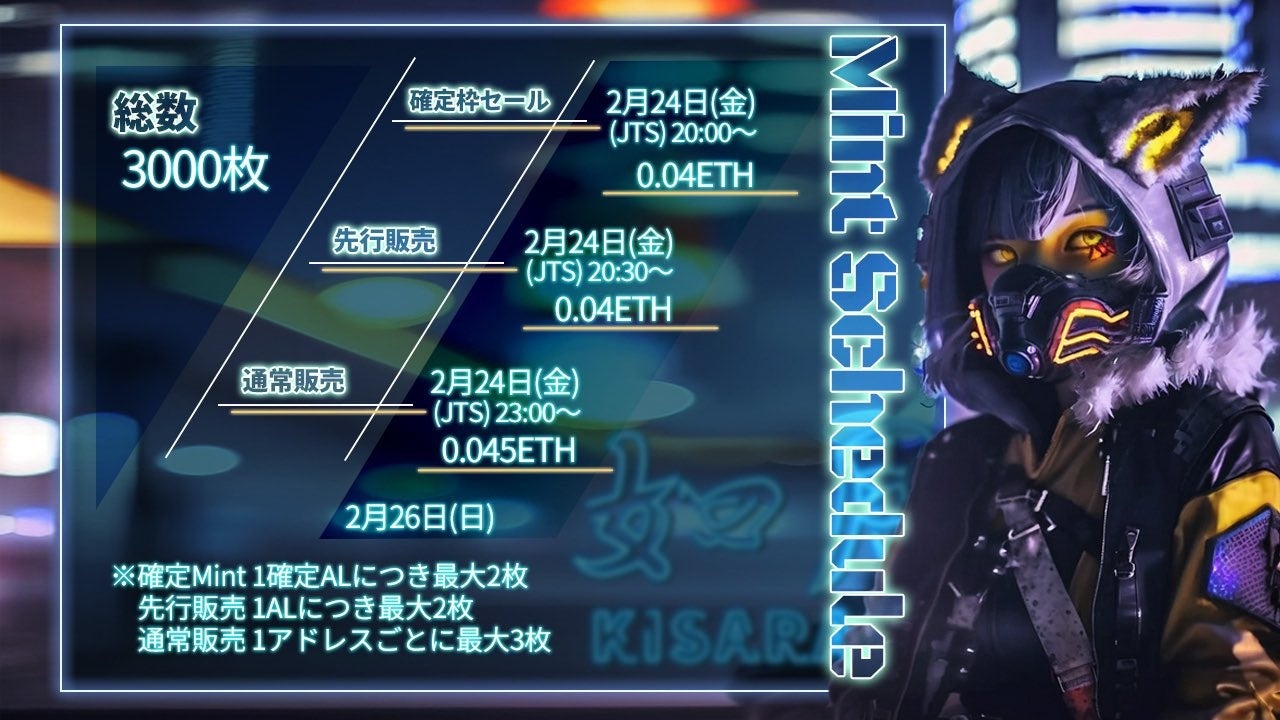 | 確定枠セール | 0.04 $ETH | 2/24 20:00~ |