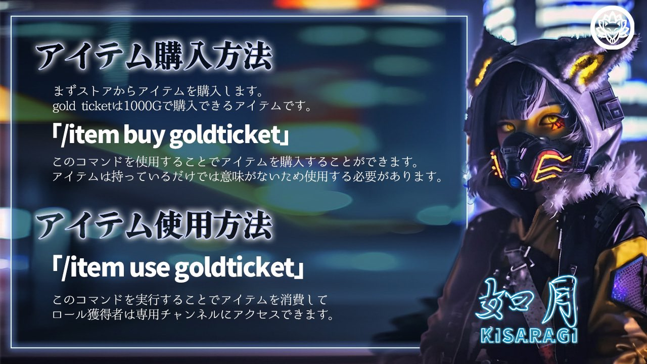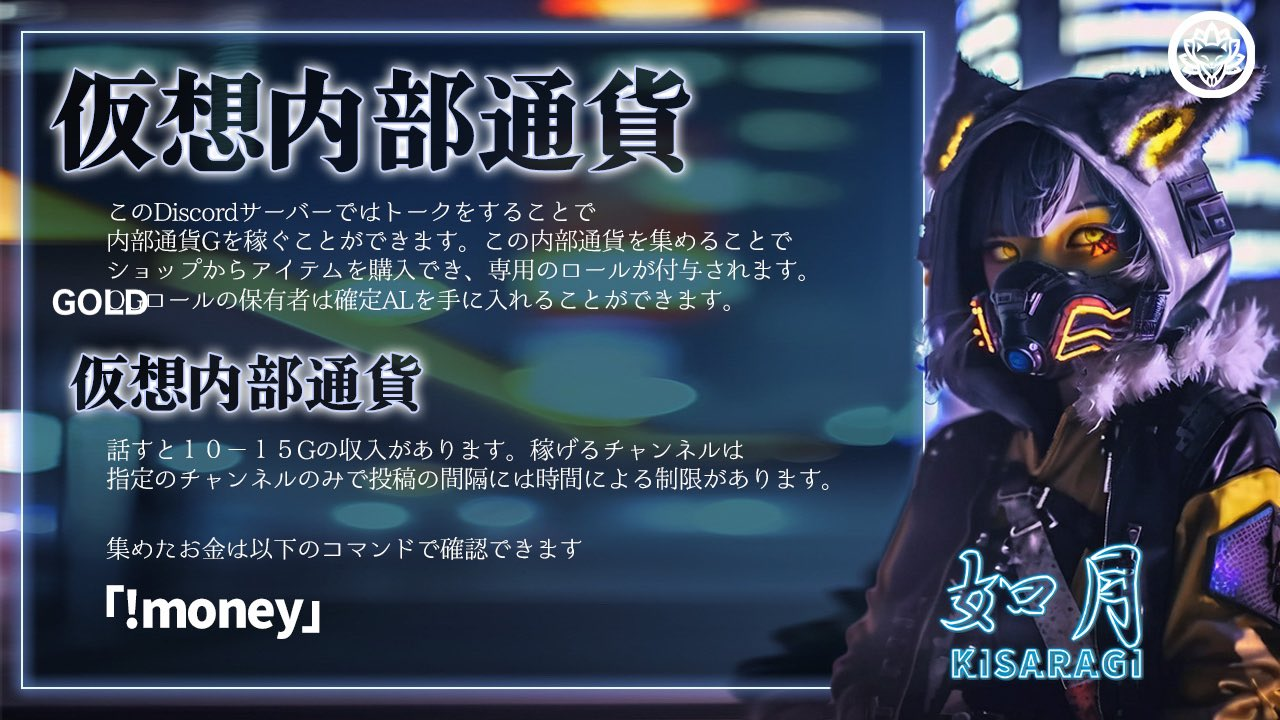 Discordチャンネルで書き込みをすると入手できる内部通貨(Gコイン)を1000G貯めると如月の確定枠1つと交換が可能です。内部通貨は書き込みの他、毎日行われるランブルでも入手可能。