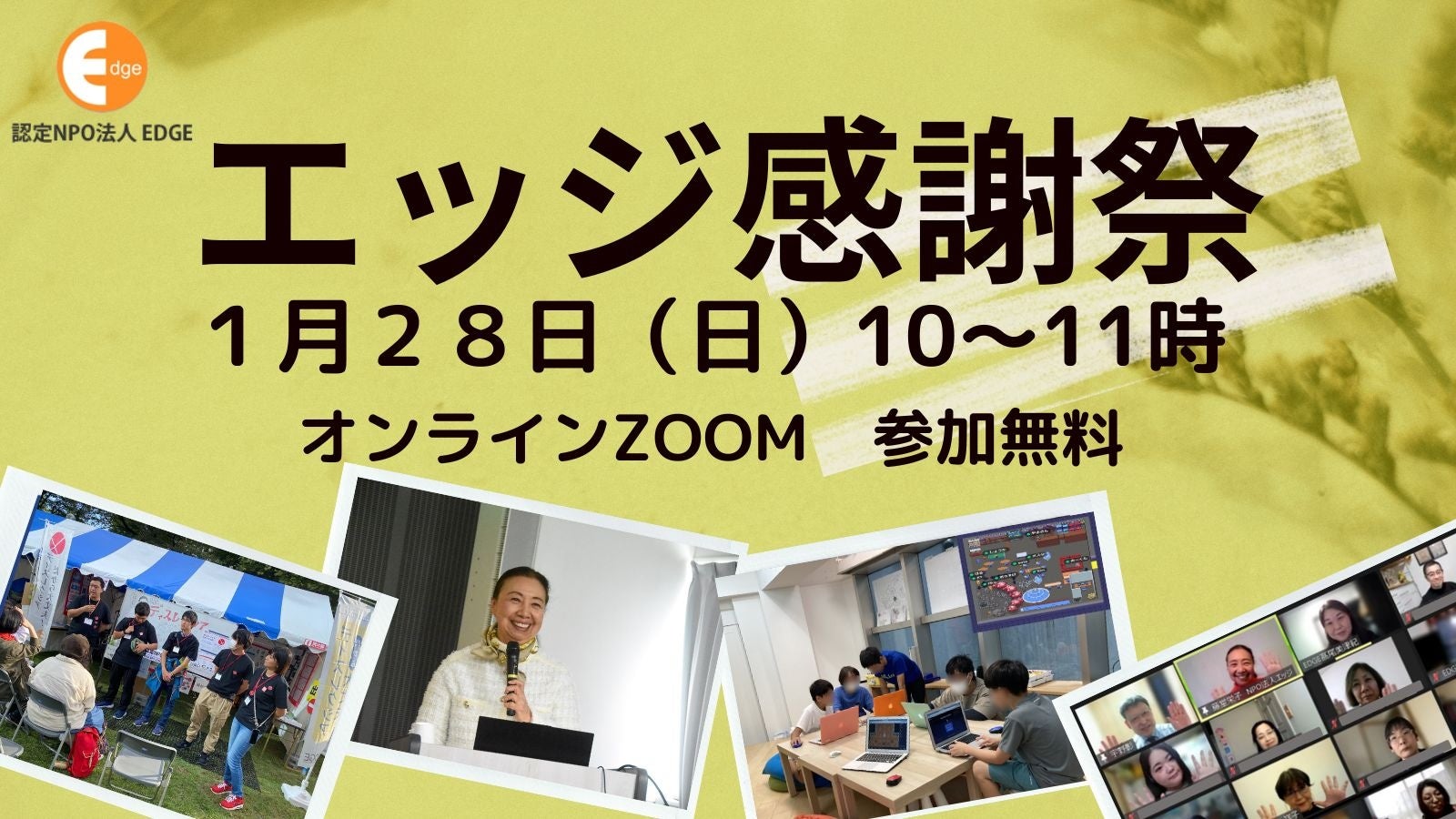 この度、エッジにご寄付・ご支援くださったみなさまにスタッフからお礼申し上げ、ご寄付をどのような活動に使わせていただいたのかご報告する、「感謝祭」をオンラインで開催します。