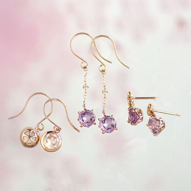 さくらインカットピアス/ ローズクォーツ・ローズアメジスト ¥110,000〜
