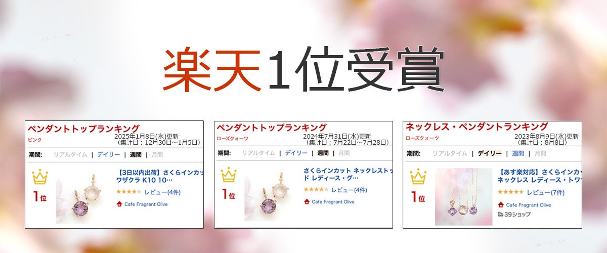 さくらインカットのジュエリーは、楽天ランキング(カテゴリ別)1位受賞。カフェオリのなかでも大人気のアイテムです。