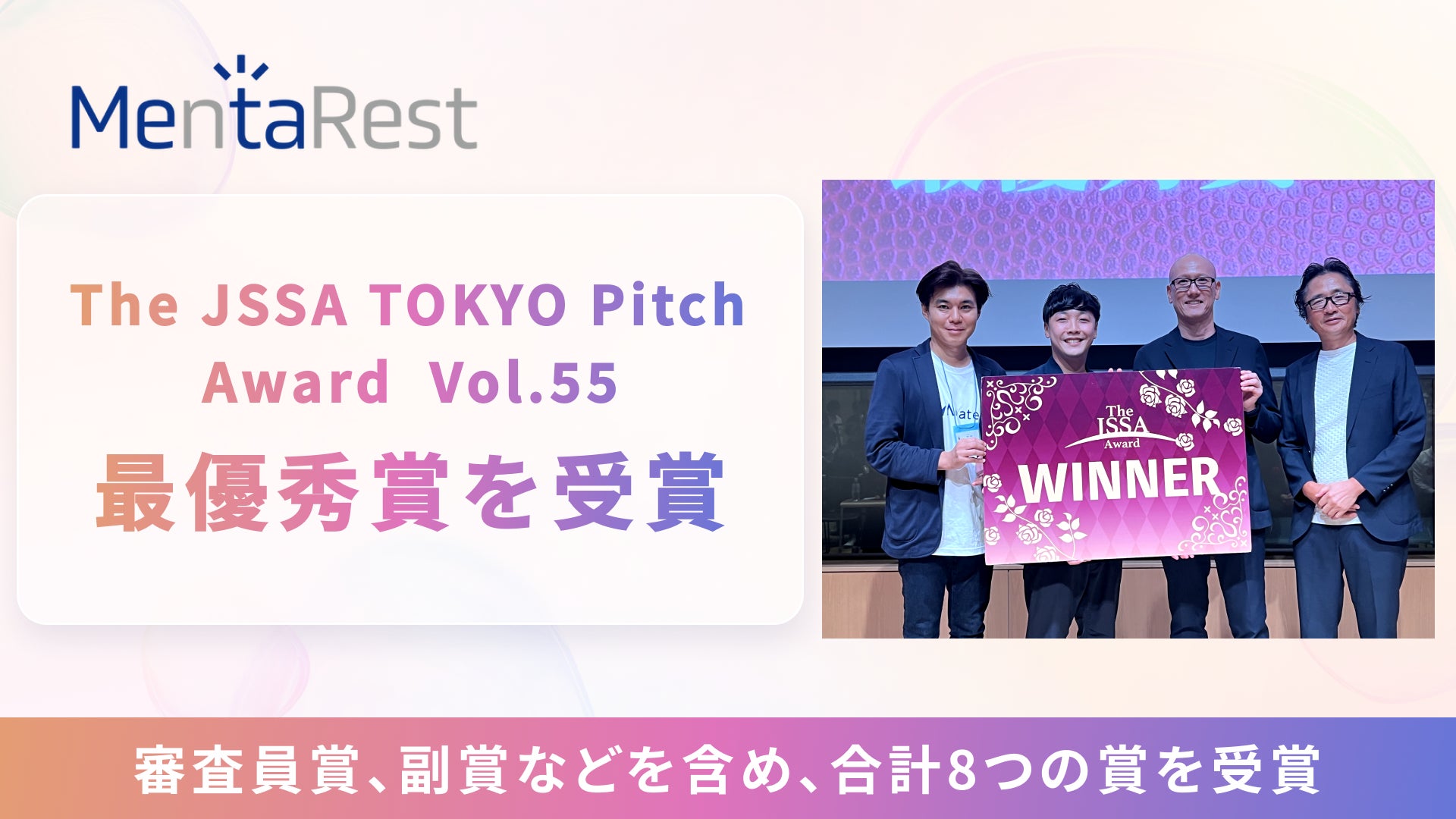 メタバースでメンタルを整える『MentaRest(メンタレスト)』を提供する株式会社MentaRest(本社:東京都 渋谷区、代表取締役:飯野 航平、以下「当社」)は、一般社団法人日本スタートアップ支援協会主催『The JSSA Tokyo Pitch Award & Power Matching Booth Vol.55 』最終審査において最優秀賞を受賞したことを発表いたします。