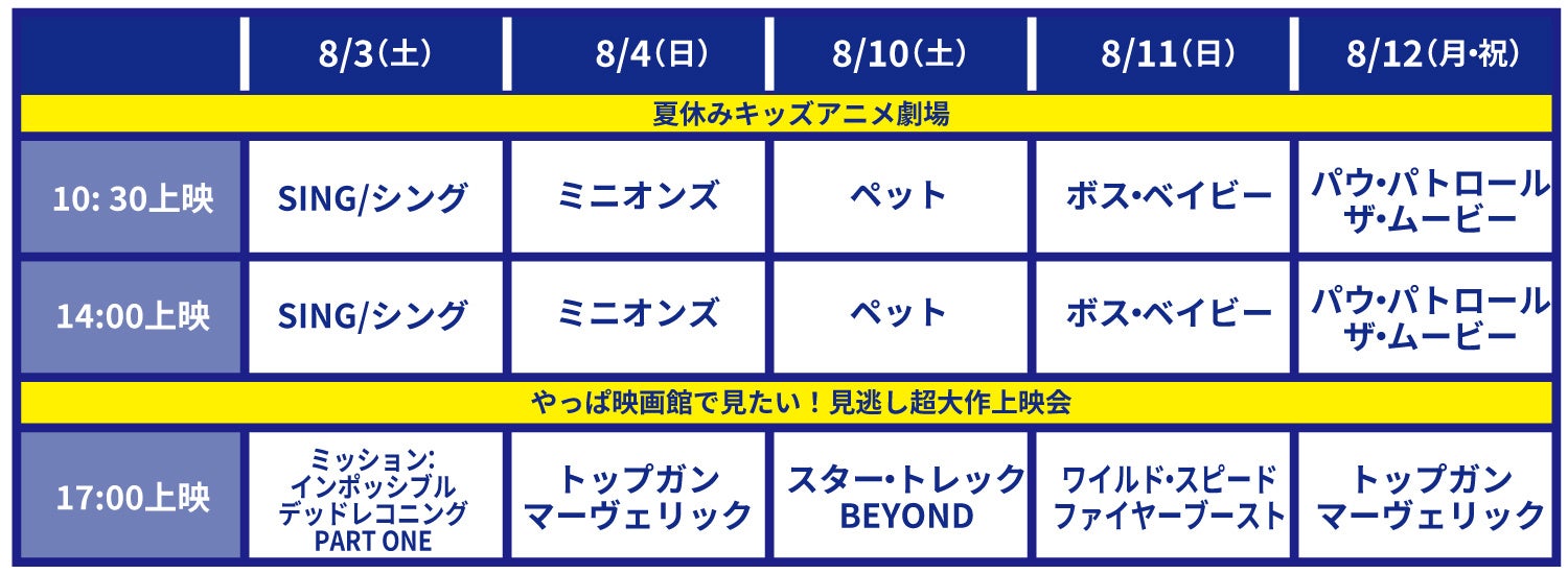 見逃し超大作上映会 & 夏休みキッズアニメ上映会