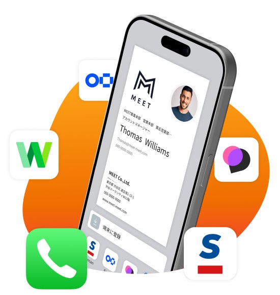 名刺をスキャンすることなく、連絡先アプリ、SansanやEight、Wantedly Peopleなどの名刺管理サービスへ登録。名刺交換後の顧客とのやり取りを後押しします。