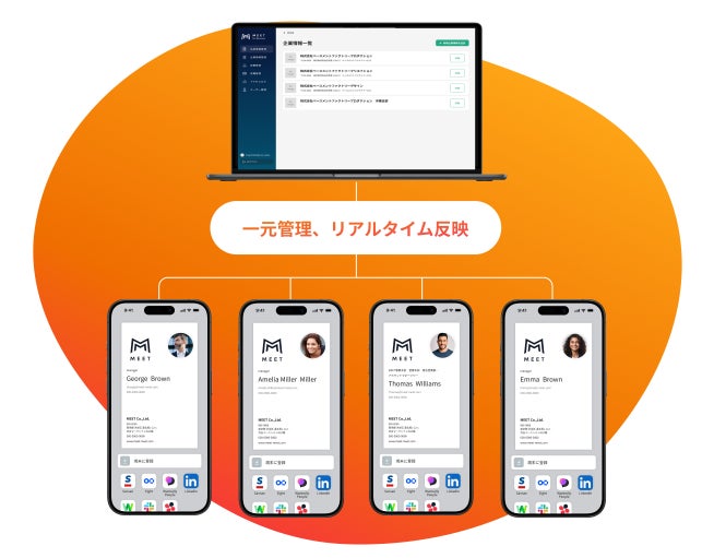 ミート株式会社(代表取締役:北村 健、所在地:東京都世田谷区弦巻1-50-13)は、MEETタッチ名刺を管理画面で一括管理することができるMEETタッチ名刺 for Businessを販売開始しました。