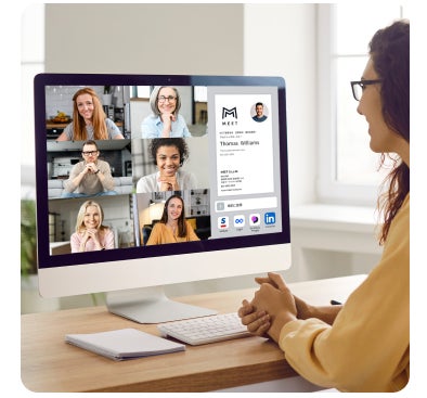 MEETタッチ名刺のURLを発行することで、オンライン・ミーティングでも名刺交換が可能。オンラインでのビジネスチャンスも取りこぼしません。