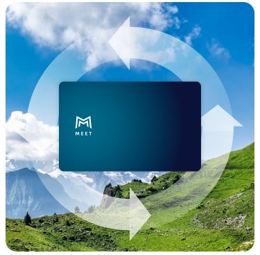 「MEET」は、ミート株式会社が独自開発したNFC(近距離無線通信)を活用したコミュニケーションサービスです。スマートフォンをMEETにかざすことでWEBサイトやアプリなどのコンテンツに一瞬でアクセスすることができます。そのため、顧客体験におけるオフラインからオンラインに切り替わるようなシーンにおいてとりわけ力を発揮します。