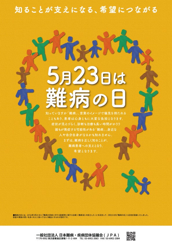 一般社団法人日本難病・疾病団体協議会(JPA)(代表理事:吉川 祐一)は「5月23日は難病の日」記念イベント2024を、2024年5月19日(日)、東京・としま区民センターで開催いたします。