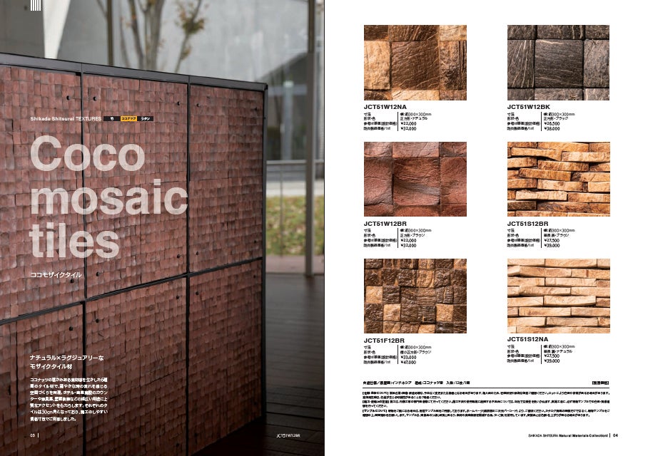 株式会社鹿田産業(本社:福岡県八女郡広川町)は、天然素材内装カタログ「鹿田室礼ナチュラルマテリアルコレクション(SHIKADA SHITSURAI Natural Materials Collection)」に収録する新製品として、装飾用モザイクタイル「ココモザイクタイル」を、2026年1月27日(火)より発売いたします。