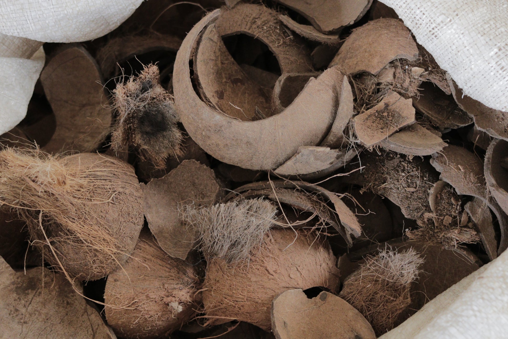②廃棄されるココナッツの殻
