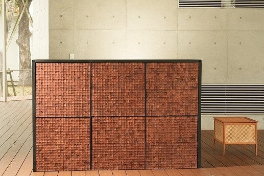 素材・環境配慮:廃棄されるココナッツ殻をチップ化。内装材として再利用したアップサイクル素材。天然素材ならではの色幅・質感・表情を活かした意匠。
