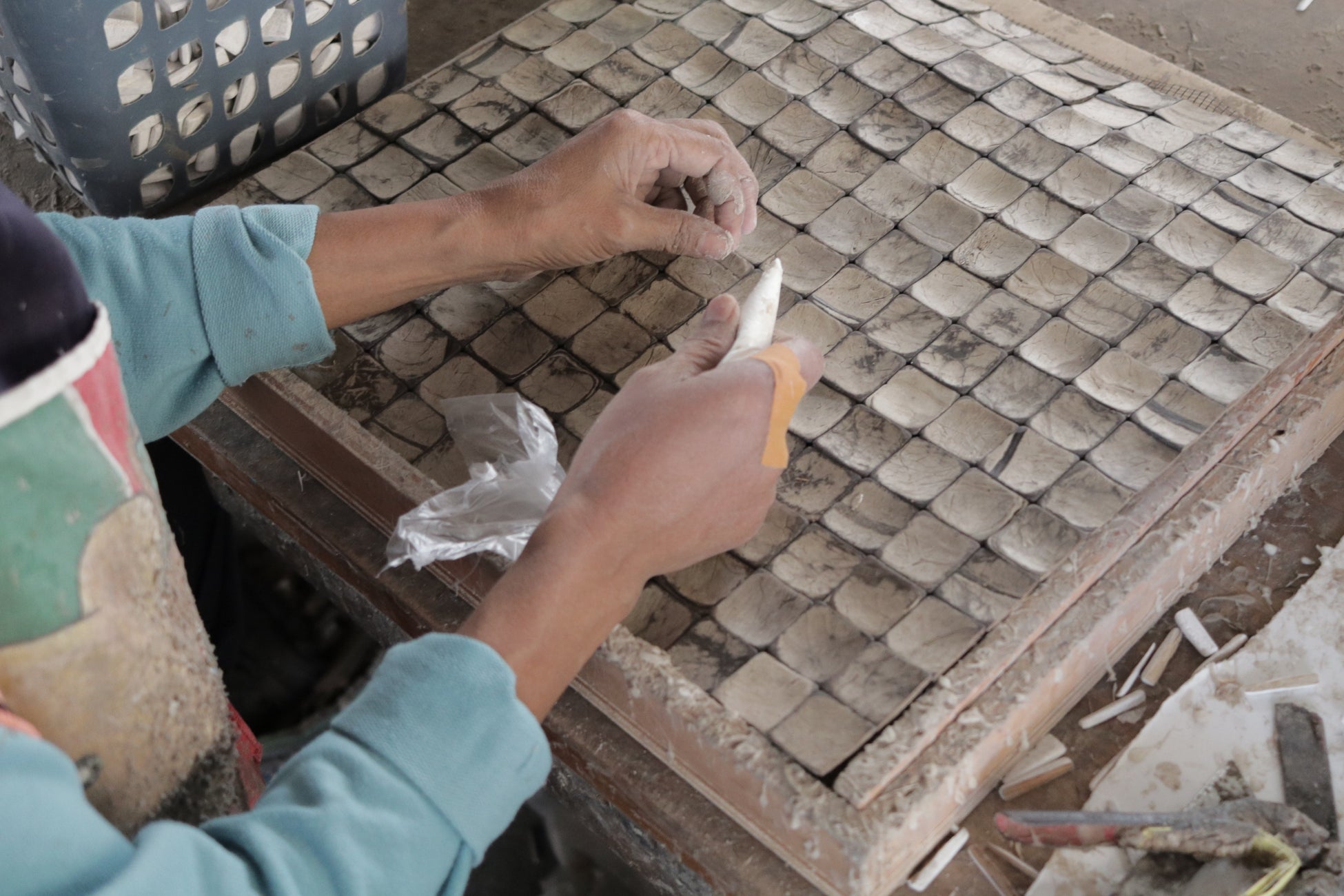 ④手作業でタイル材を製作