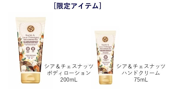 チェスナッツミルク*¹⁰やシアバター*¹配合の、ハンドクリームとボディローションのキット。伸びのよいテクスチャーで、手肌にしっとりやわらかなうるおいをもたらします。