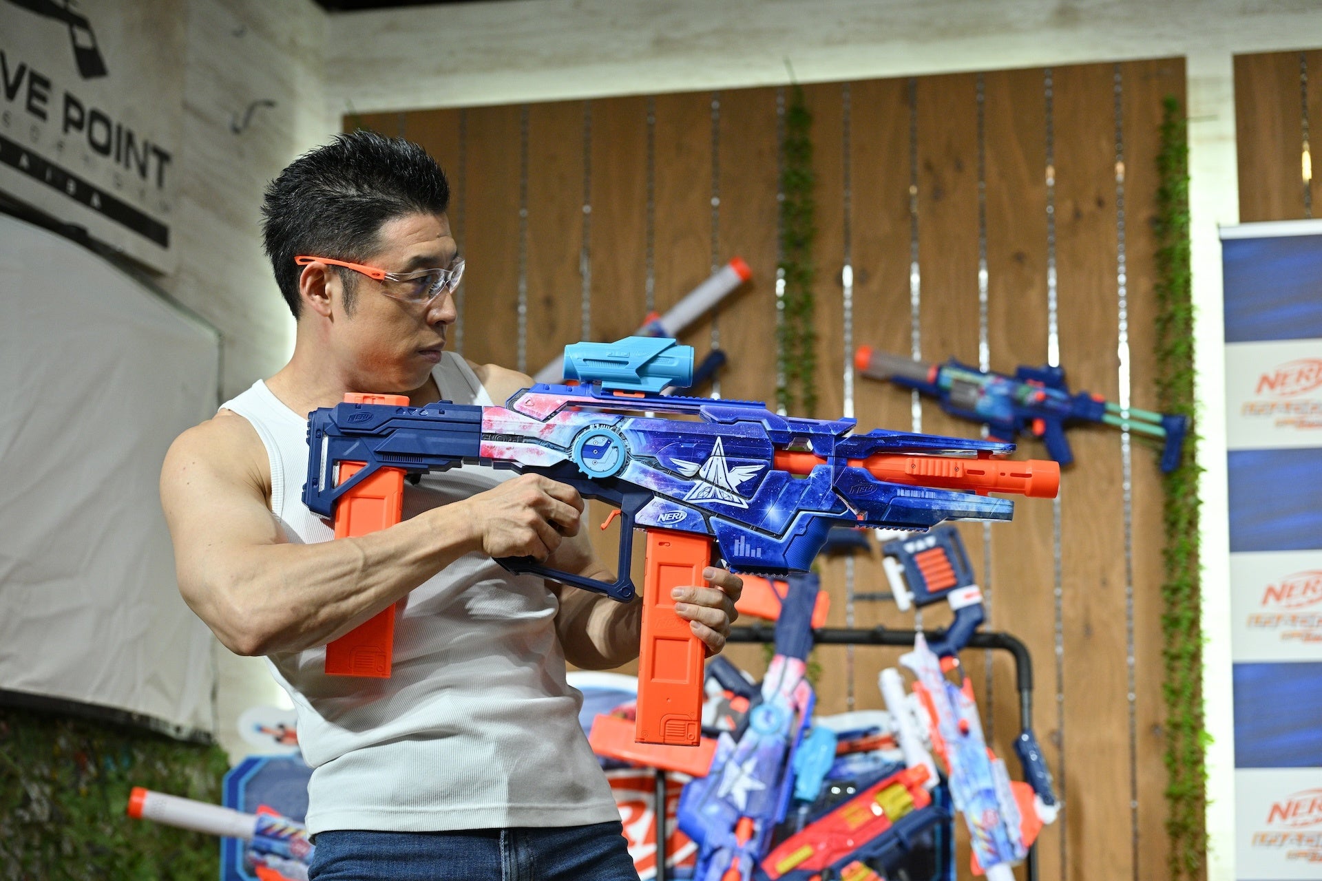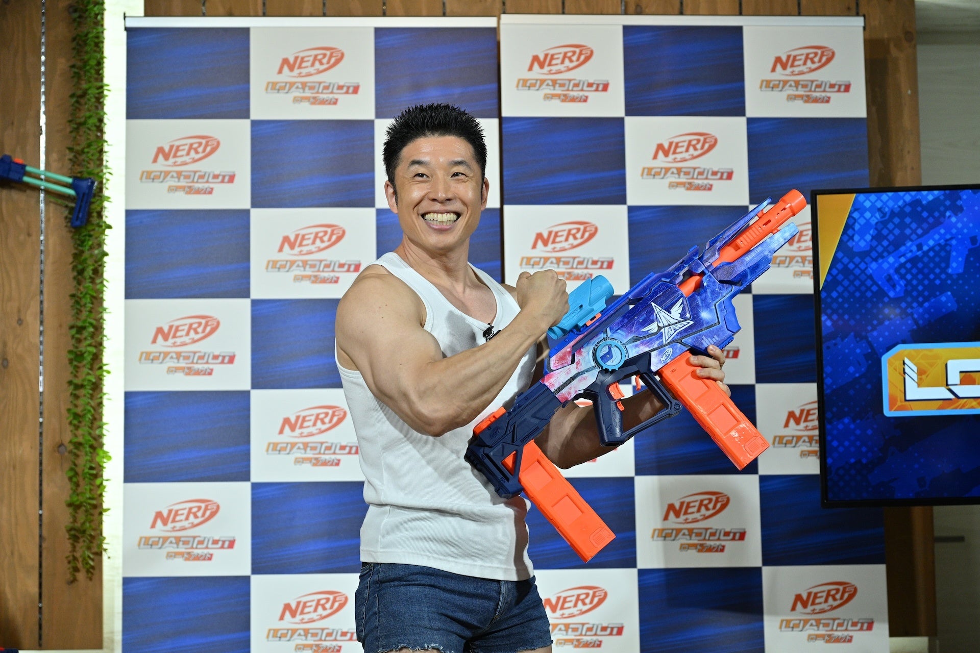 「ナーフ ロードアウトブラスター」シリーズ発表会に、タレントのなかやまきんに君がゲスト登壇!オリジナルの「きんにくブラスター」を制作し、今年の夏の始まりをなかやまきんに君らしさ全開で宣言
