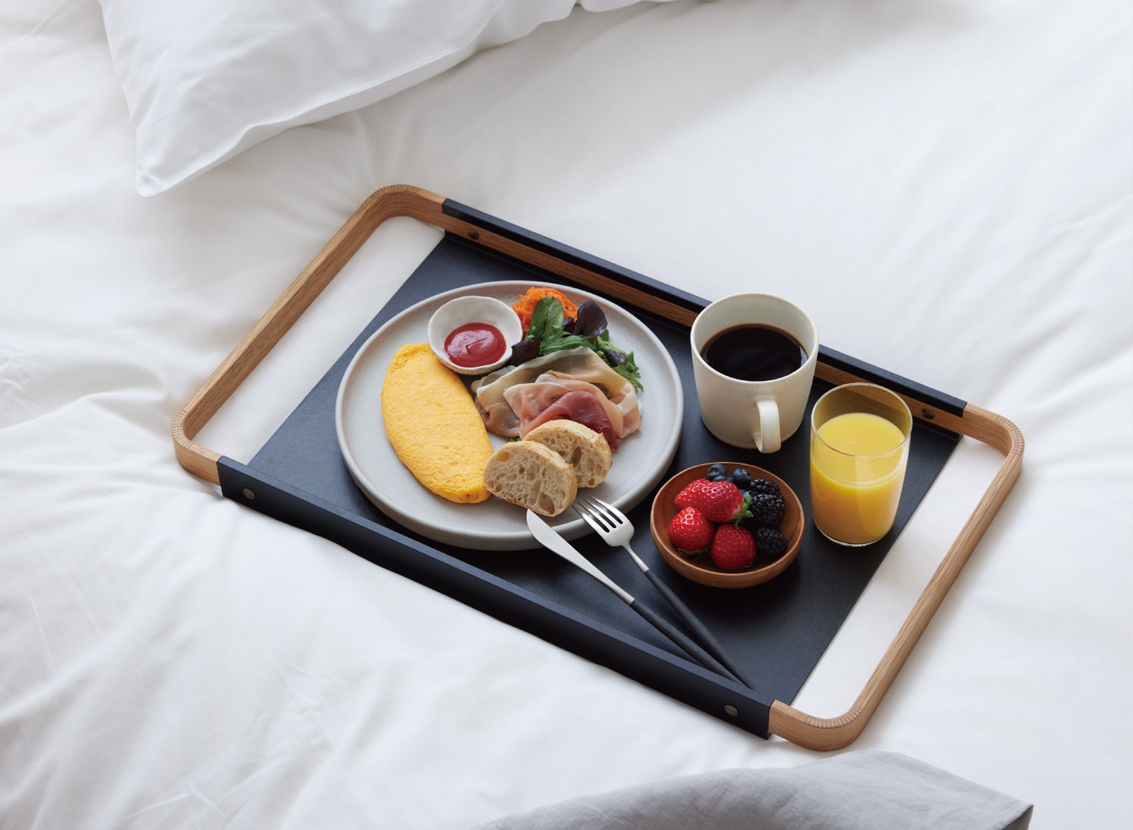 お料理を運ぶトレイとしてだけでなく、キャンドルやフラワーベース、大切なものを飾るように置き、インテリアの一部としてお使いいただくことで、空間を洗練された雰囲気に演出することができます。