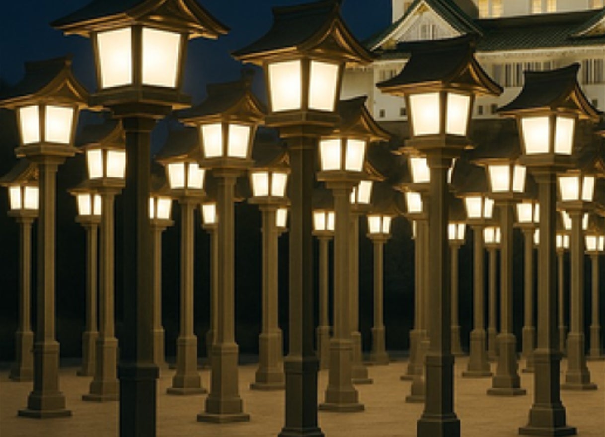 ⽇本ならではの美意識と歴史を重ねた「灯籠回廊」が登場。無数の灯籠が整然と⽴ち並び、幻想的で荘厳な光の道が⽣まれます。訪れる⼈々はただ「⾒る」だけでなく、「歩く・感じる・写真 を撮る」ことで光と⼀体化し、記憶に残る没⼊体験をお楽しみいただけます。