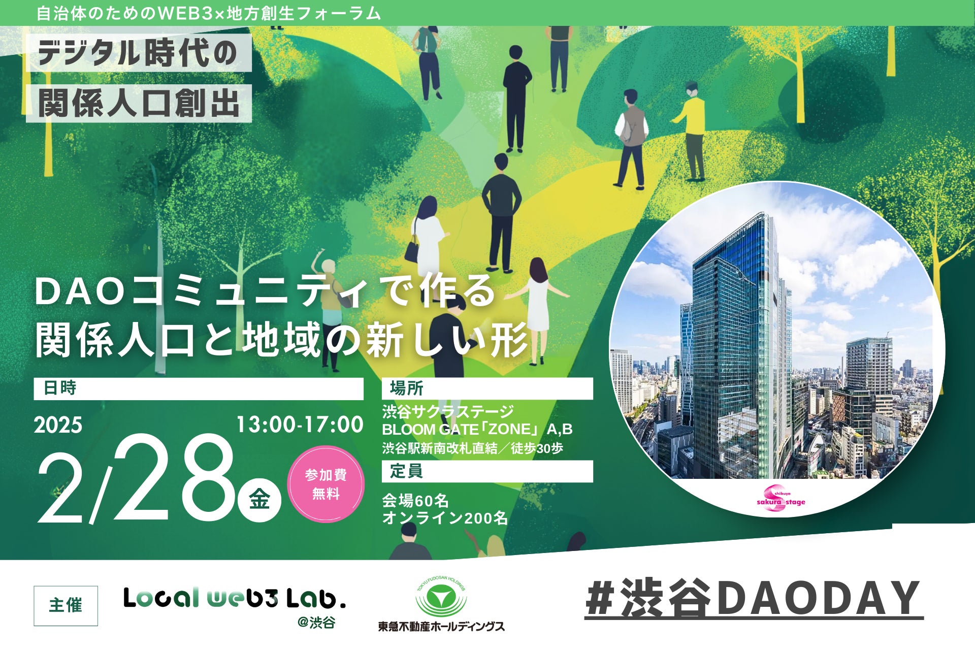 東急不動産ホールディングス株式会社(本社:東京都渋谷区、代表取締役社長:西川 弘典、以下「東急不動産ホールディングス」)とMeTown株式会社(本社:東京都目黒区、代表取締役:田中 一弘、以下「MeTown」)が共同で推進している地方創生のための実証実験プロジェクト「Local web3 lab.@渋谷」は、2025年2月28日(金)、渋谷サクラステージにて自治体のためのweb3×地方創生フォーラムを開催することをお知らせします。本イベントでは、全国各地で活動するDAO(分散型自律組織)のコミュニティが一堂に会し、地域課題解決の新たな可能性を探ります。