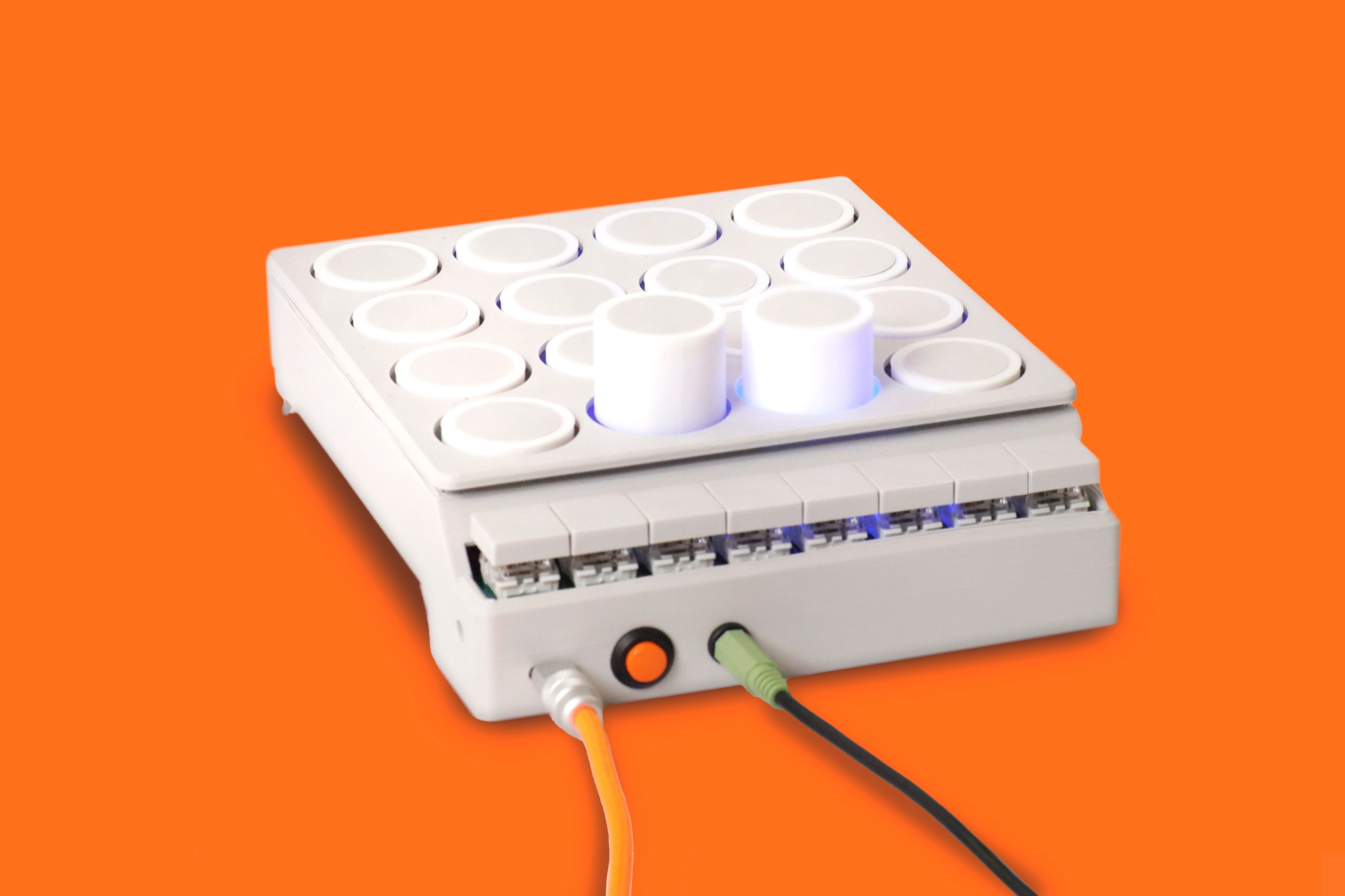 音に合わせてボタンが飛び出すことで、音を耳だけでなく目で見て手で触れられる楽器ロボットです。アプリと接続することでAIとの協奏を行うインターフェイスとしても機能します。
