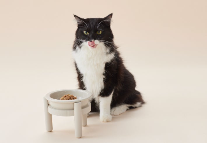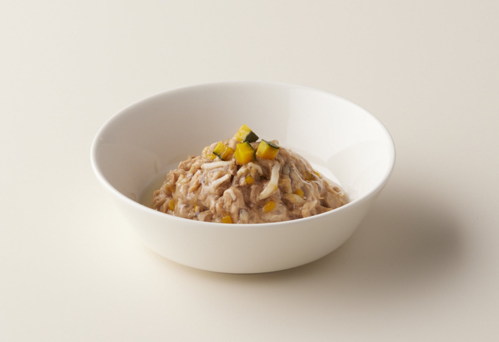 レシピ設計はもちろん、香りやテクスチャー、味わいやパッケージに至るまで、ねこを熟知した当社獣医師が、専門的な観点から商品開発を行いました。栄養バランスへの配慮とおいしさを両立し、日々のごはんの新しい選択肢として開発した、新しいフードです。