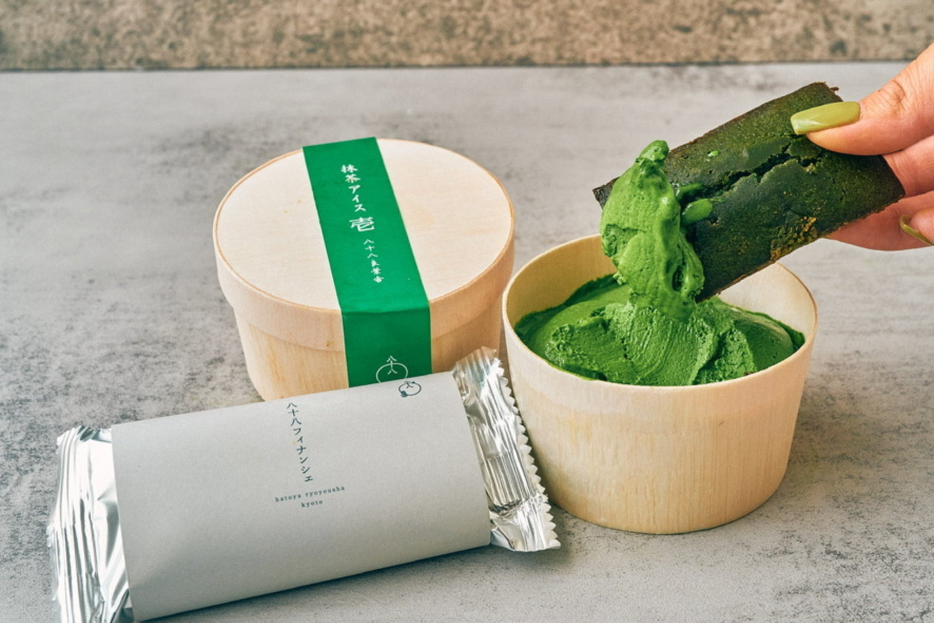 オンラインショップで販売中の「抹茶アイス 壱」に温めた「八十八フィナンシェ」をディップすると、しっとりと温かいフィナンシェで溶け出す抹茶アイスとのマリアージュをお楽しみいただけます。