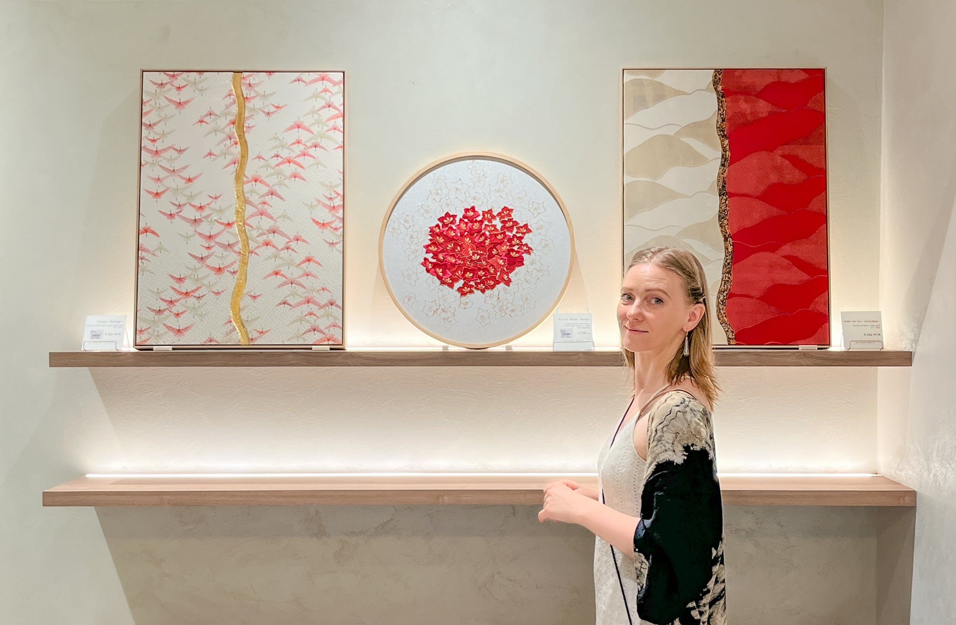 今回、4回目の開催となる伊勢丹マレーシアの丹青会において、ikasuの作品を展示・販売させていただく機会をいただきました。アンティーク着物をアップサイクルした現代アート作品は、多くのお客様から高い評価を頂きました。