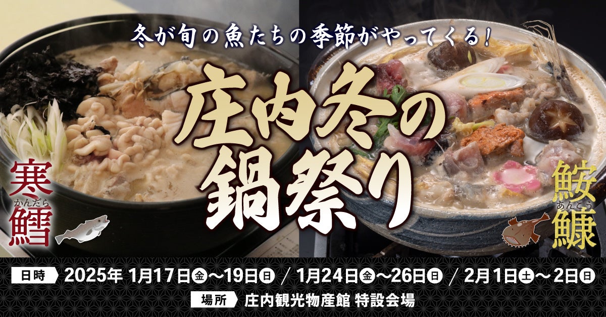 株式会社庄交コーポレーション(所在地:山形県鶴岡市、代表取締役:近藤 司)が運営する土産物専門店「庄内観光物産館」は、「寒鱈祭」を 2025年1月17日(金)~19日(日) , 1月24日(金)~26日(日), 2月1日(土)~2日(日) の日程で、「あんこう鍋祭」を 2025年2月22日(土)~24日(月) の日程で開催いたします。