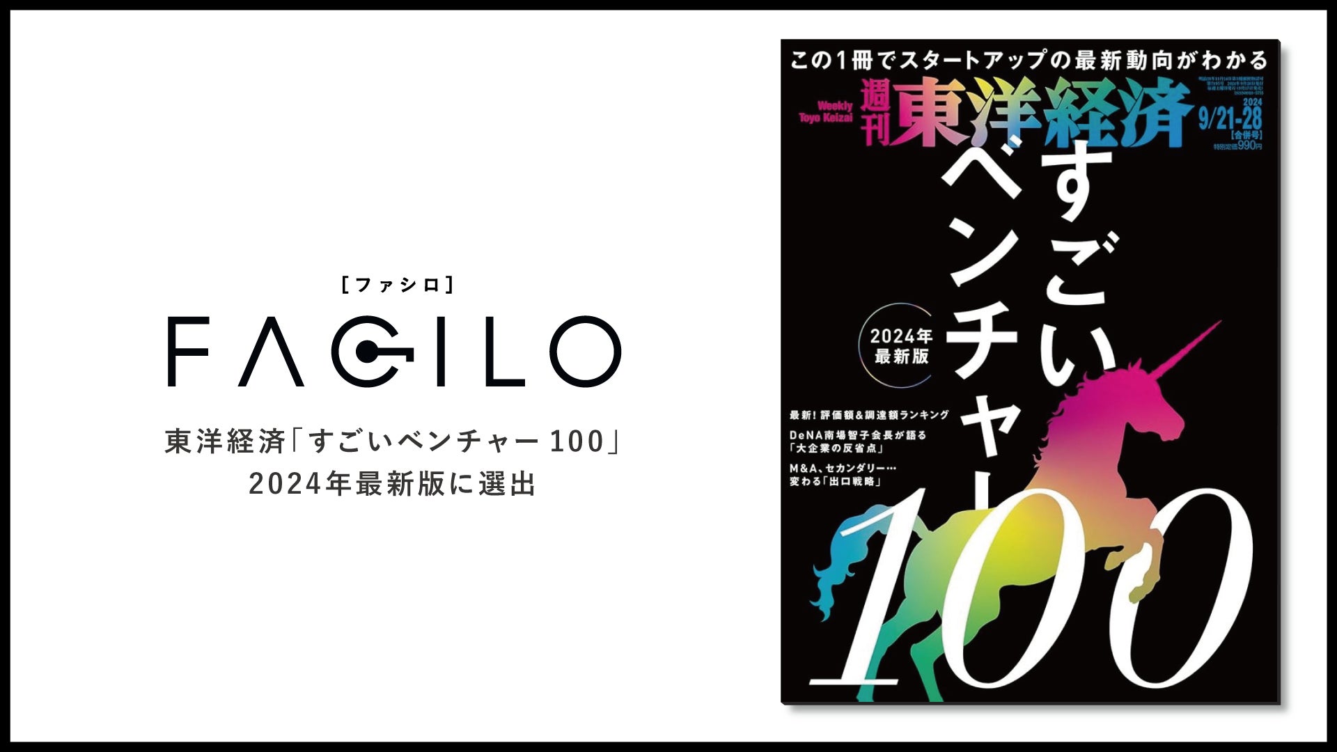 Facilo、東洋経済「すごいベンチャー100」2024年最新版に選出