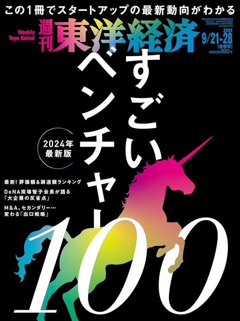 「すごいベンチャー100」とは、ユニークなビジネスモデルや先進的な技術を持つベンチャー企業の中から、資金調達の規模などを勘案の上、東洋経済編集部が厳選した100社を紹介する年に1度の特集です。