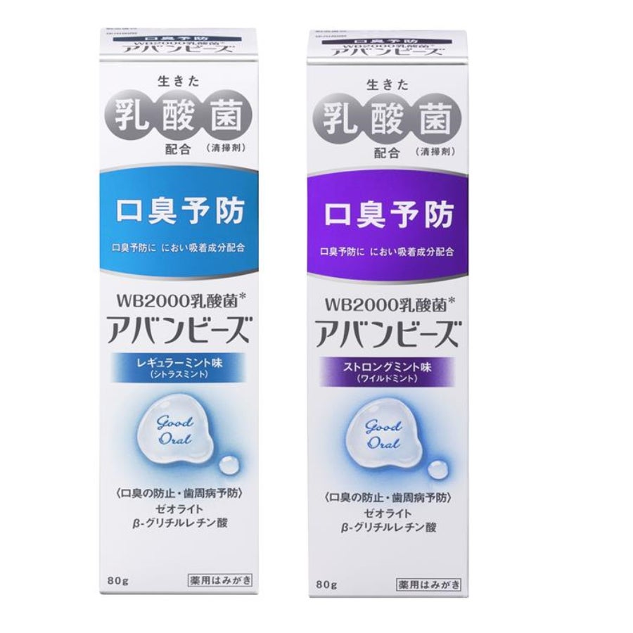 「アバンビーズ®」は生きた乳酸菌を(清掃剤)として配合した薬用歯みがきとして、2005年に発売されました。商品名の由来でもあるフランス語で「キスの前に」をコンセプトに、口臭が気になる方に向けた製品になっております。発売から20年を迎え、多くの人々にご愛用いただいています。