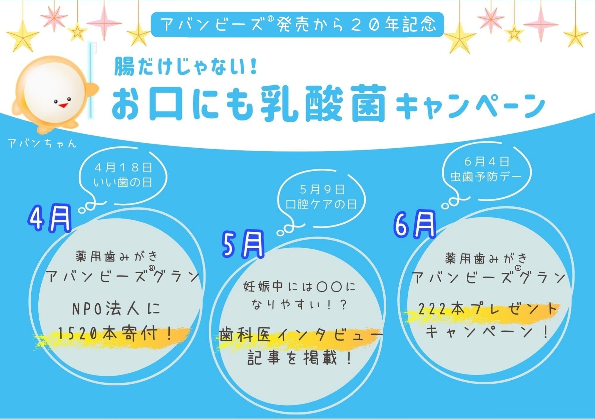 妊娠時には○○になりやすい?妊婦の口腔トラブルについて徹底解説!薬用歯磨きアバンビーズ®発売20年を記念し3ヶ月連続企画「腸だけじゃない!お口にも乳酸菌キャンペーン」を実施