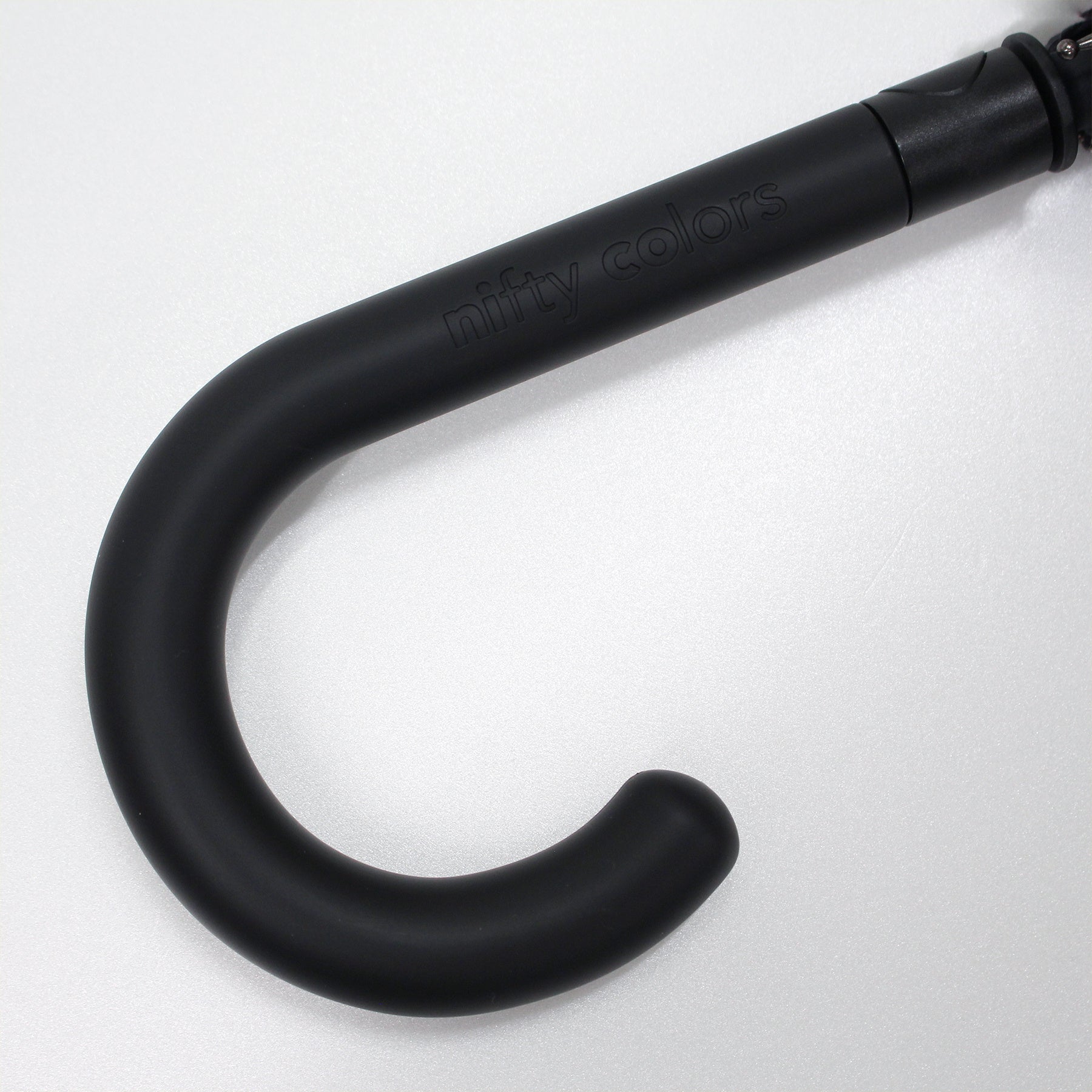 従来のスタンダードなジャンプ構造から、刻印入りのハンドルとすっきりしたボタンジャンプ構造にリニューアルしました。耐風機能(風速15m/sの風速試験済み)はそのままで、シャープで機能的なデザインになりました。男性はもちろん、大きめのサイズを求められる女性の方にも満足出来るサイズ感です。親骨と受け骨のつなぎ目をZ型の構造にすることで、強い風を受けても反り返り、風を受け流しては破損を防ぎます。
