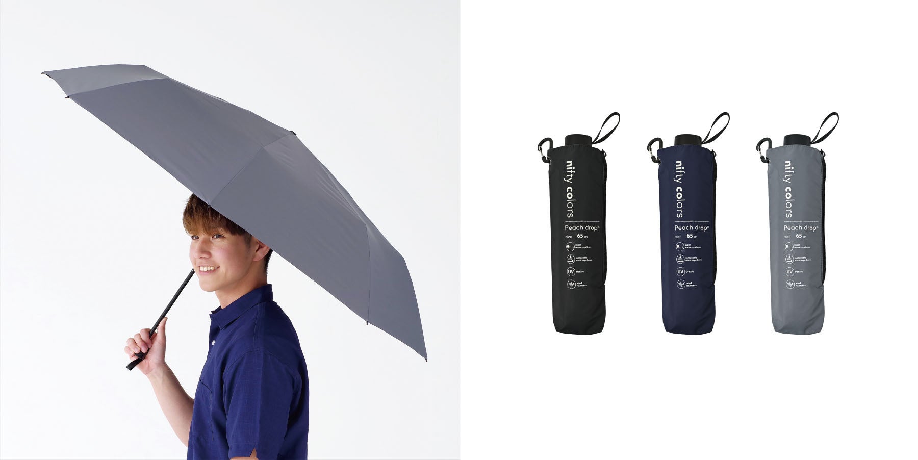 一瞬で水滴を弾く超撥水素材「Peach drop(ピーチドロップ)」から新作が登場、Makuakeで1200%達成の持ち手が伸びる傘や新作レインウエアなど雨の日も晴れの日も使えるアイテムが揃いました。