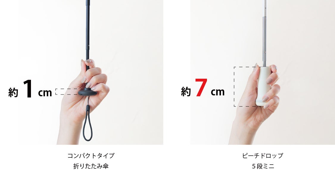 1月に「Makuake」で先行販売し、達成率1200%以上の結果を出した「持ち手が伸びる折りたたみ傘」は、コンパクトな折りたたみ傘の握りにくさを解消した持ち手部分が伸びる特殊構造で、しっかり握れて安定感抜群な高さ16.5cmのコンパクトな折りたたみ傘です。水を弾き持続する超撥水機能にUV機能もプラスして、雨の日も晴れの日も毎日使える「これ1本で全てを叶える」パーフェクトな晴雨兼用傘です。