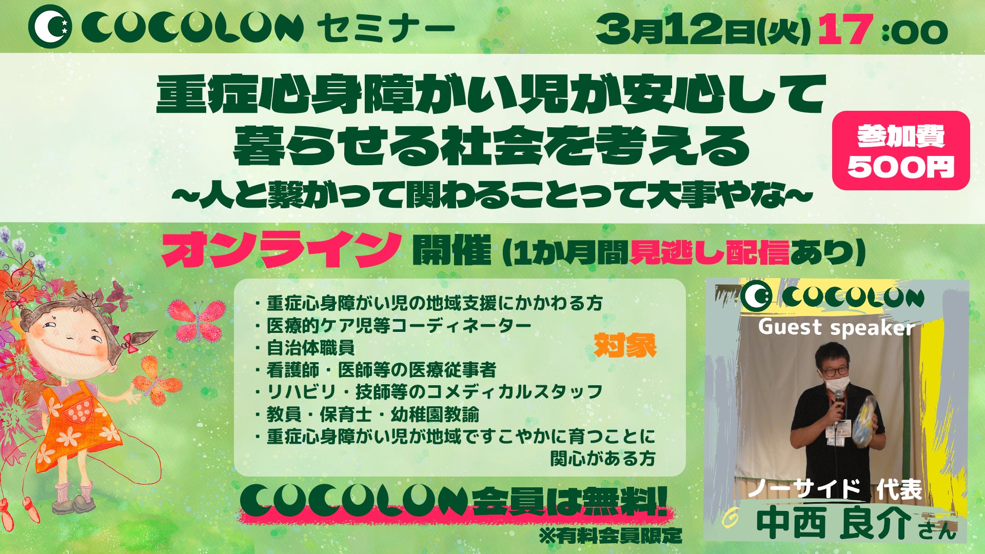 主 催 :重症心身障がい児と家族・きょうだい・支援者みんなのコミュニティ【COCOLON】