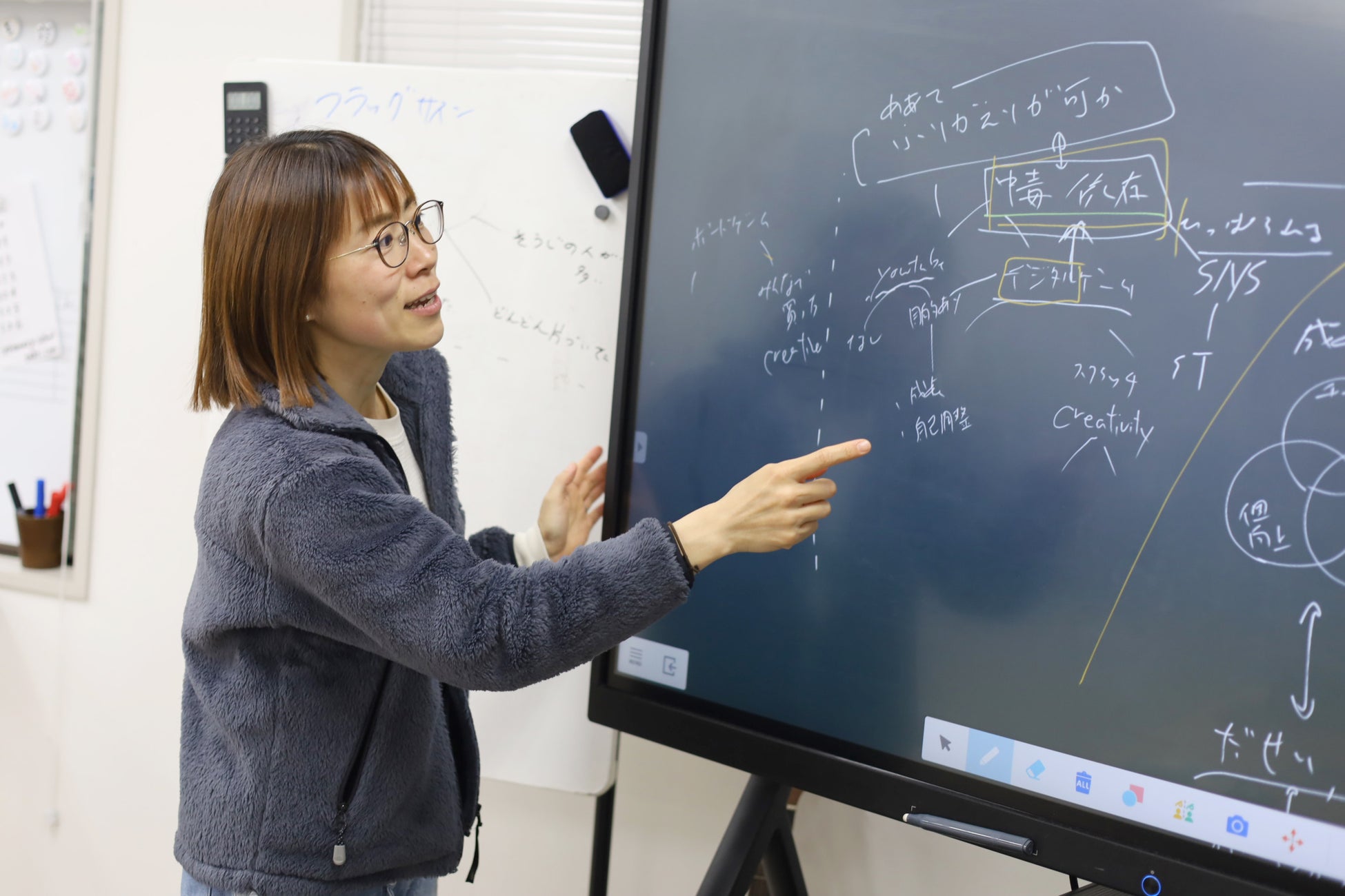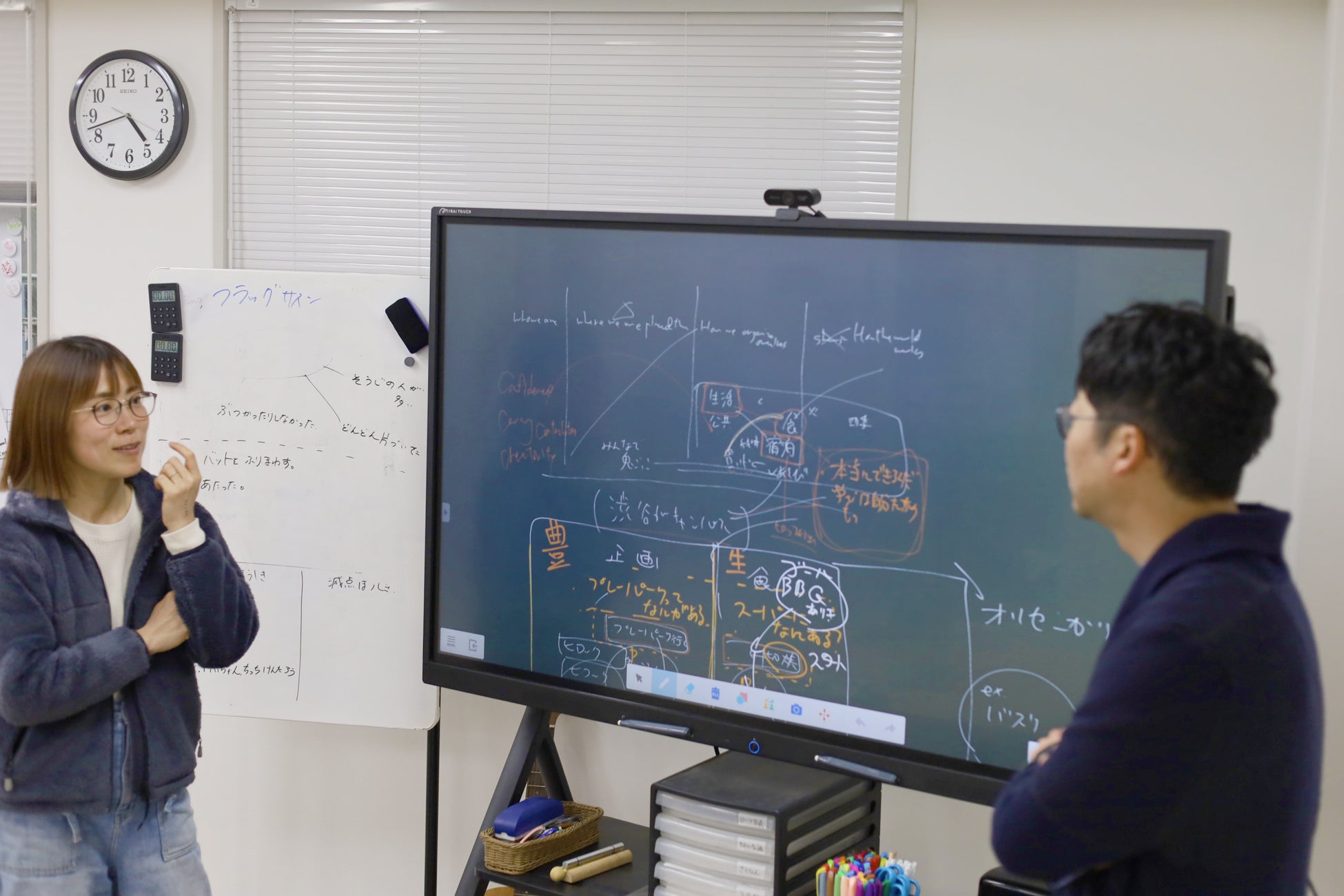 1校目である世田谷校の時に授業で利用する目的で導入した。その際にミライタッチの使用感の良さに驚き、今後は全校に導入することを決めた。その後、各校で限られた時間で行われるミーティングでの対話を深めるために利用している。