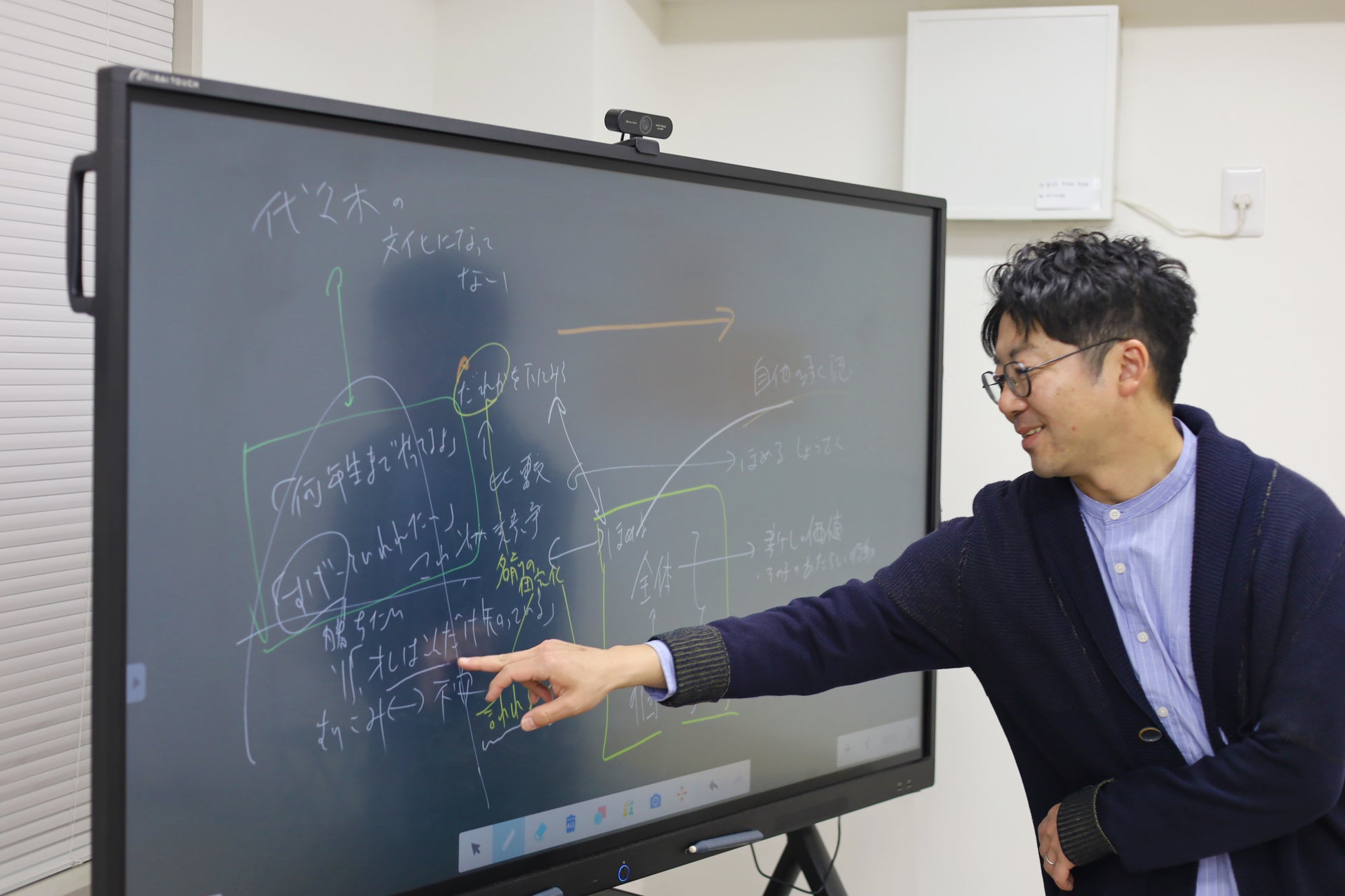 『MIRAI TOUCH Biz』は、毎日3校でWeb会議を実施する際に使用されています。導入後は、会議が“話し合う場”ではなく、“新たなアイデアや発想を育む場”になったとご好評をいただきました。代々木校スクールディレクターの五木田様は、「会議の場に『MIRAI TOUCH Biz』があると、お互いの意見をボードに書きながら整理ができ、思考もどんどん深められて、議論を建設的に前へと進めていくことができます」と語られています。
