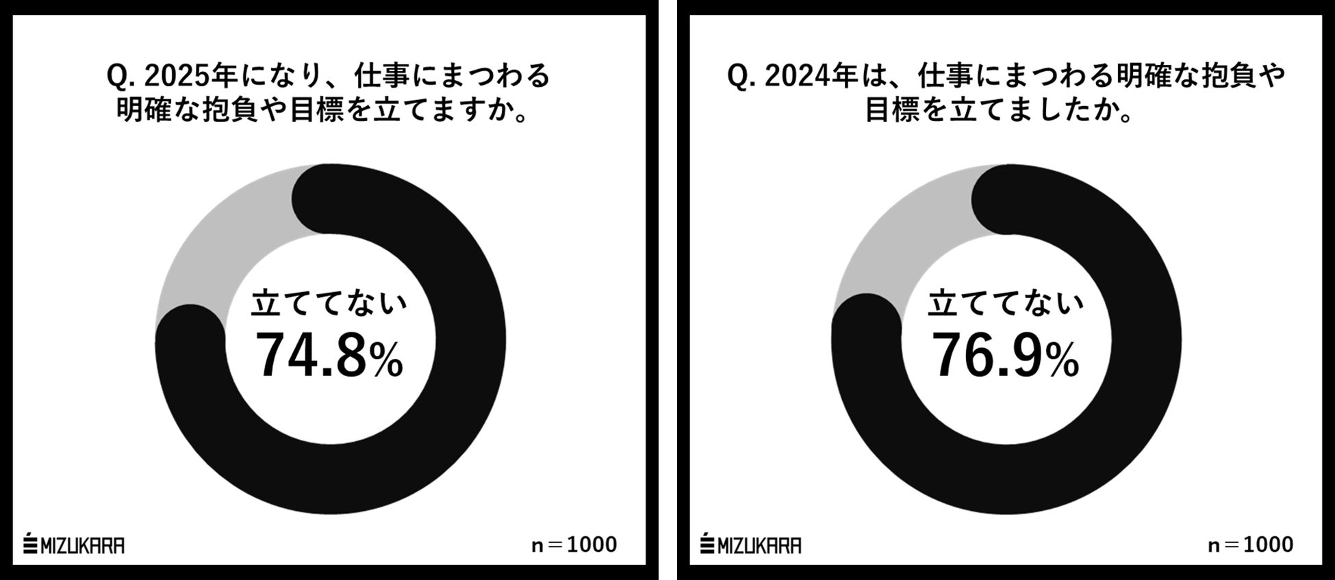 仕事において「目標のない日本人」が大多数⁉ビジネスパーソンの約8割が新年の抱負や目標を立ててない結果に!認知科学コーチングを提供するミズカラ「2025年の目標に関する実態調査」結果発表