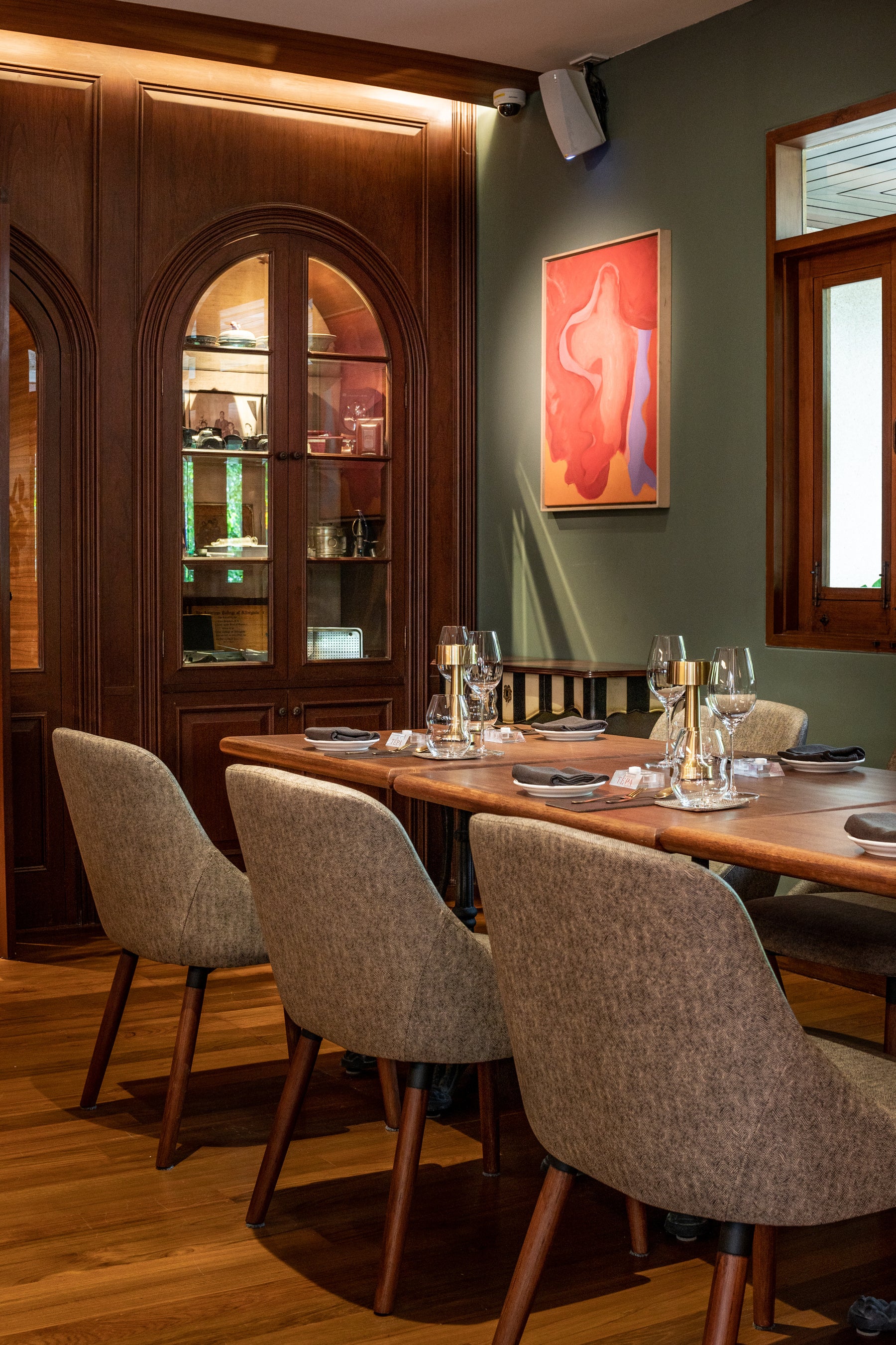 2020 年にオープンした「バーン・テパ」は、オープンキッチンのダイニングルーム、シェフズテーブル、オーガニック・ガーデンが、調和を保ちつつ融合したスペースとなっています。「ハート・オブ・タイランド:ナム・プリック」(一口毎にタイ国内の異なる地域を表現)、「ドンダン・ヌードル」、「アナトミー・オブ・ア・リバープラウン」と名付けられた料理から構成される7 品のテイスティングメニューでは、ゲストをタイ各地への旅へと誘います。かつてタム氏の祖母の家であった三世代家庭の邸宅は、タイの伝統料理の素晴らしさを賞賛する都会風の空間へと生まれ変わりましたが、オリジナルの木製フローリングや高い天井、元来の素材を用いた壁など、魅力的な特徴はそのまま残されています。