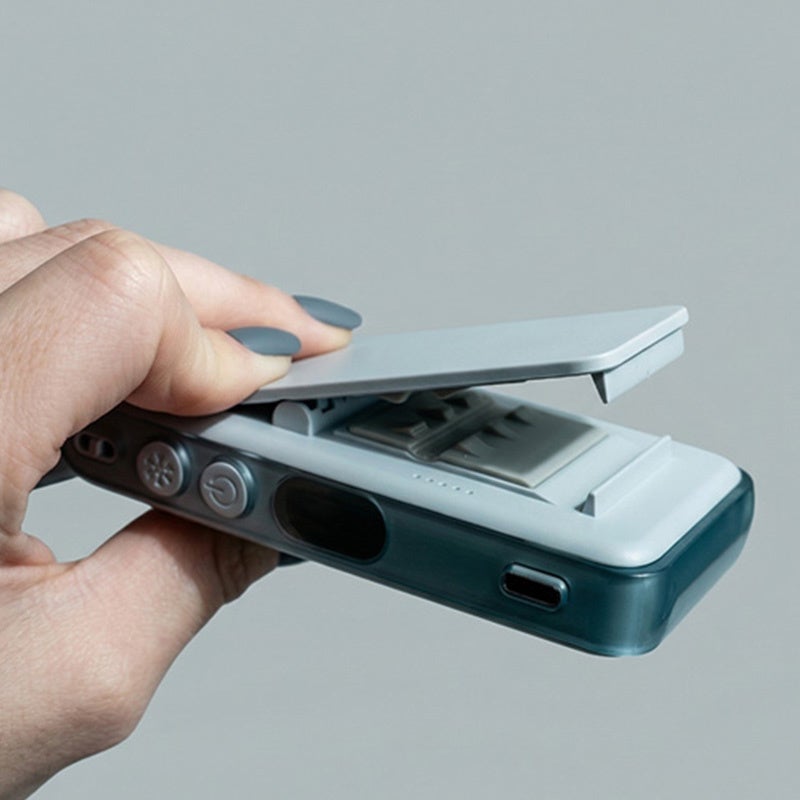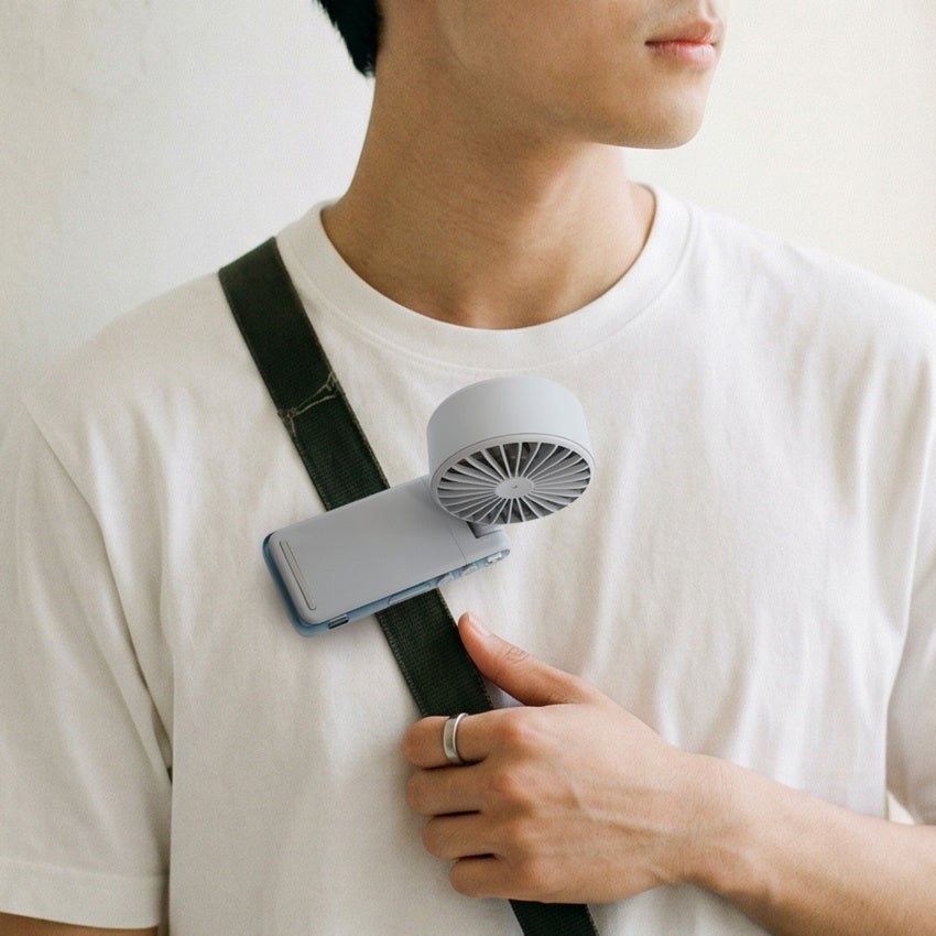 最大2.5cmまで開くシリコン付クリップにより、日傘やカバンのストラップ、ベルトなどにブレることなく固定。上下180°・左右360°のダブル回転設計で、狙った場所にピンポイントで冷風を届けます。「手ぶら」で涼めるため、日傘ユーザーや子連れの外出に最適です。