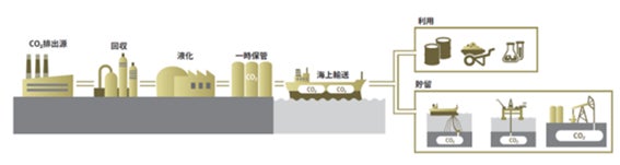 CCS (Carbon dioxide Capture and Storage)は、火力発電所や工場などから排出されるCO₂を回収し、安定した地下の地層に貯留を行うことを指します。回収地から利用地もしくは貯留地までは専用のLCO₂輸送船で輸送します。