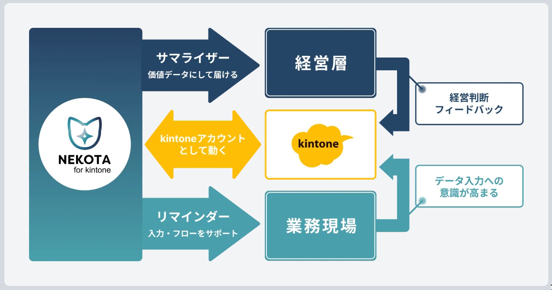 kintoneを「入力するツール」から「データが育つプラットフォーム」へ。NEKOTAは、このループを回し続ける仕組みです。