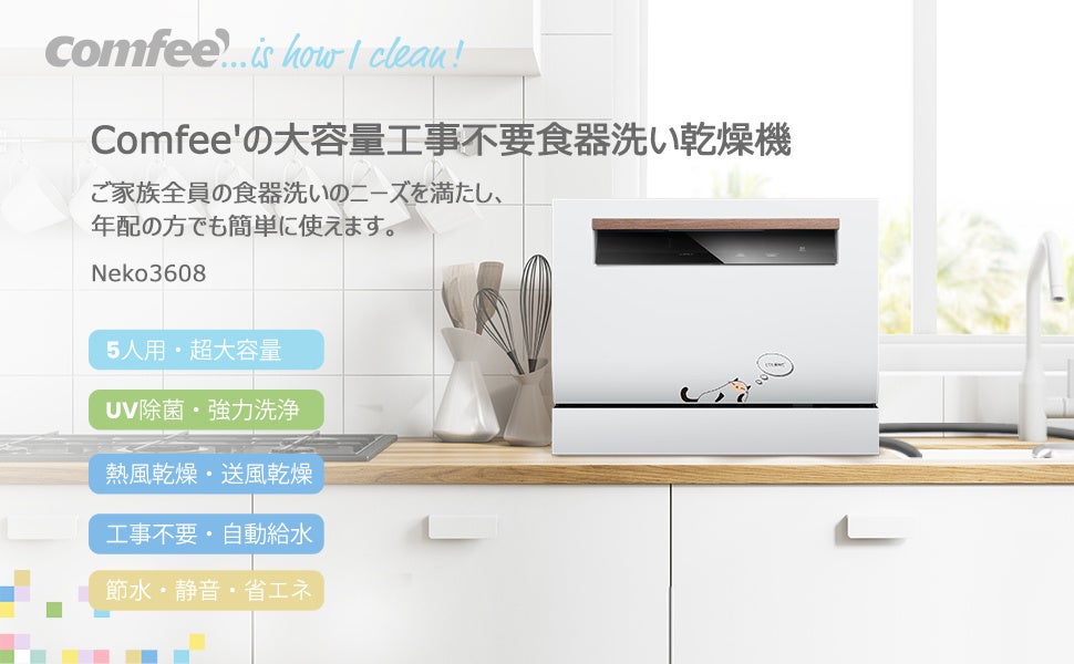 COMFEE' 4~5人用大容量食洗機 WQP6-3608 & Neko3608